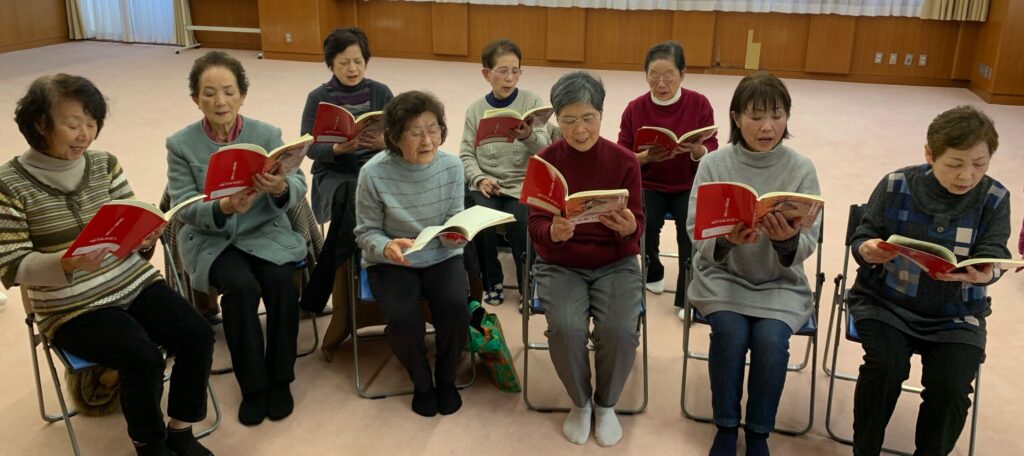 茨木童謡コーラス(大阪府茨木市) 2025年1月5日2024年1月16日 by 鈴谷大輔 茨木童謡コーラス(大阪府茨木市)は、生涯学習センターきらめきの3階にある「研修室304室」を主な活動拠点として、木曜日の午後に活動しています。 この日は、臨時会場の上中条青少年センター3階の音楽視聴覚室にて今年最後の合唱練習が行われました。