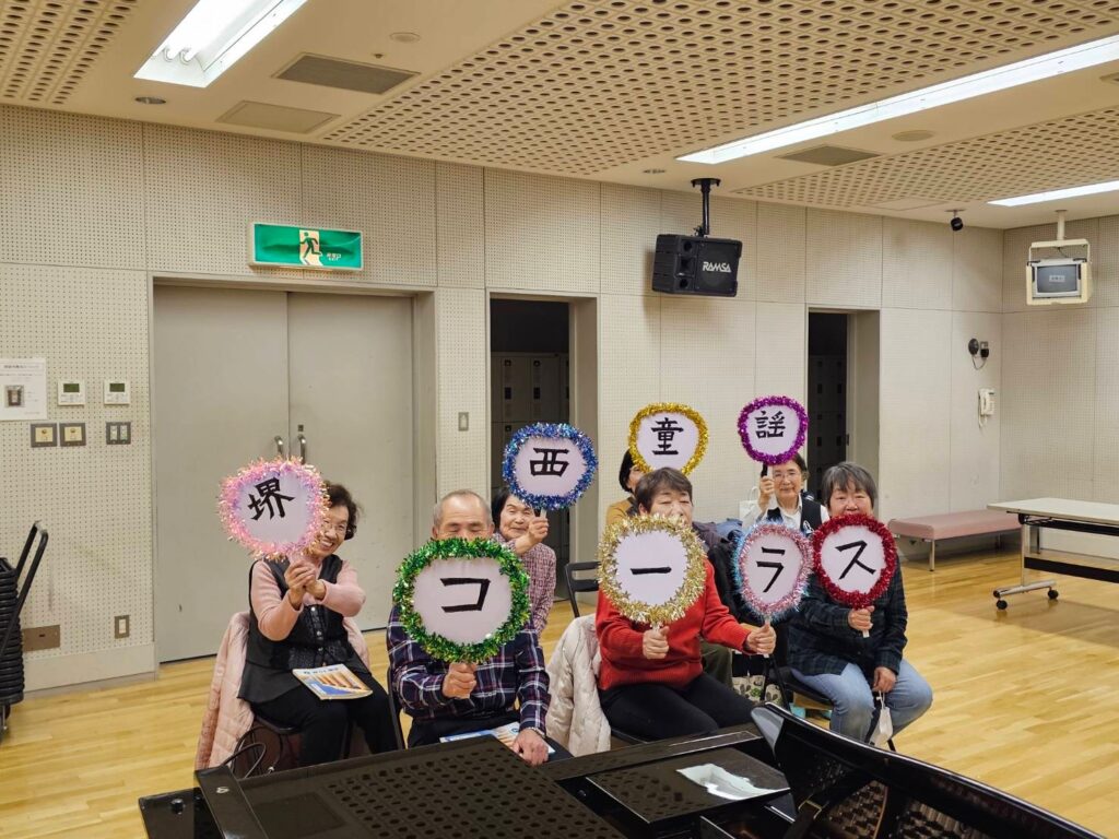 堺西童謡コーラスは、水曜日のお昼1時00分〜2時30分に活動しています。