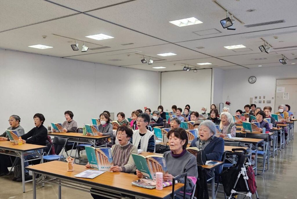 本日12/11が年内最終活動日。欠席7名と多く出席は35名でしたが、見学→ 入団が1名いらっしゃり、和やかな雰囲気の中、歌い納めをすることができました。