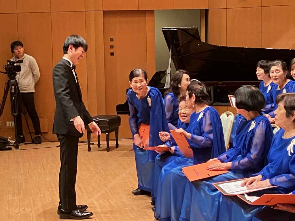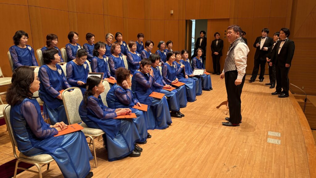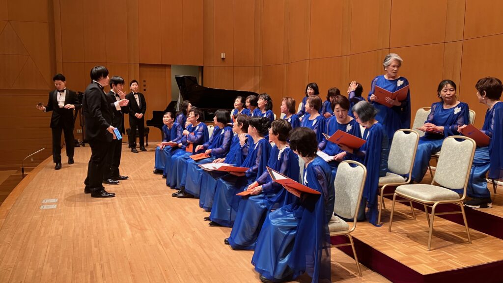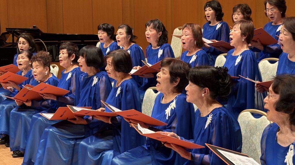 2025年2月15日(土)午後に舞子ビラホールおきまして、童謡コーラスのテレビ番組の最終回放送の収録会が行われました。童謡コーラスのモデルコーラスとして、24年間のレギュラー出演を続けている「おさらい成果発表団」の皆様。「2024年度修了式」「2024年度卒団式」で『♪仰げば尊し』を歌いました。
