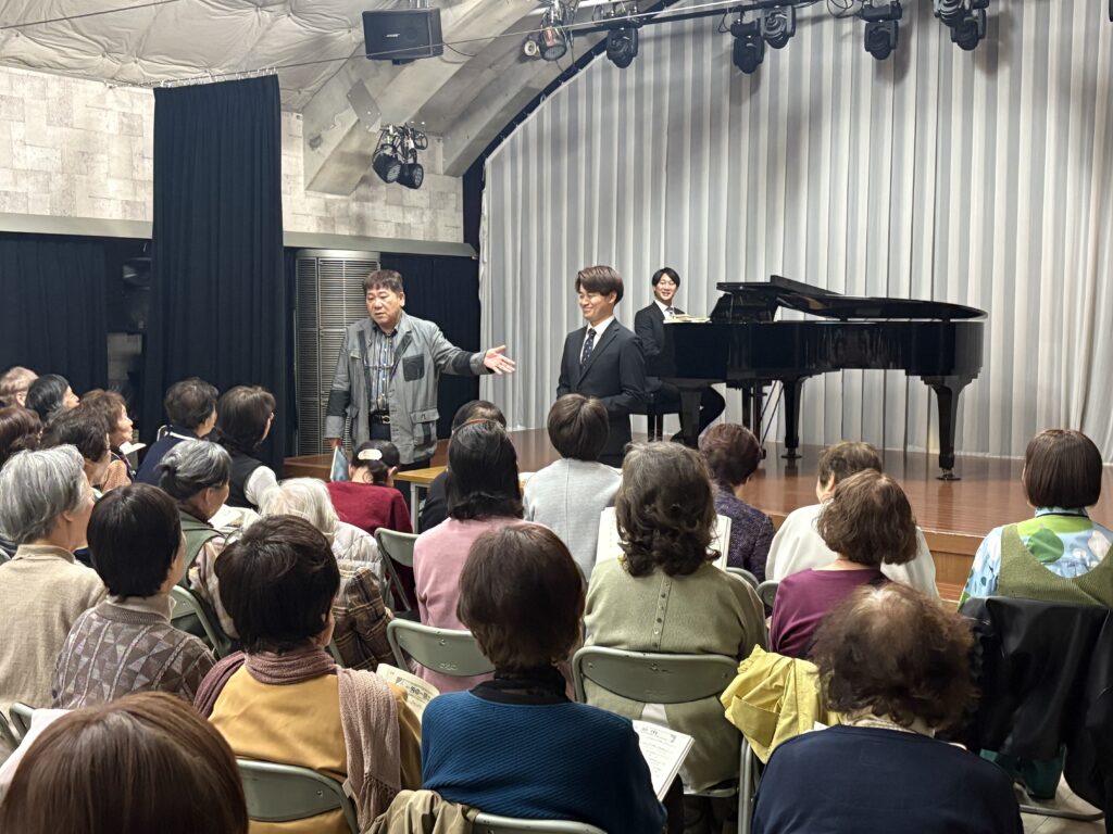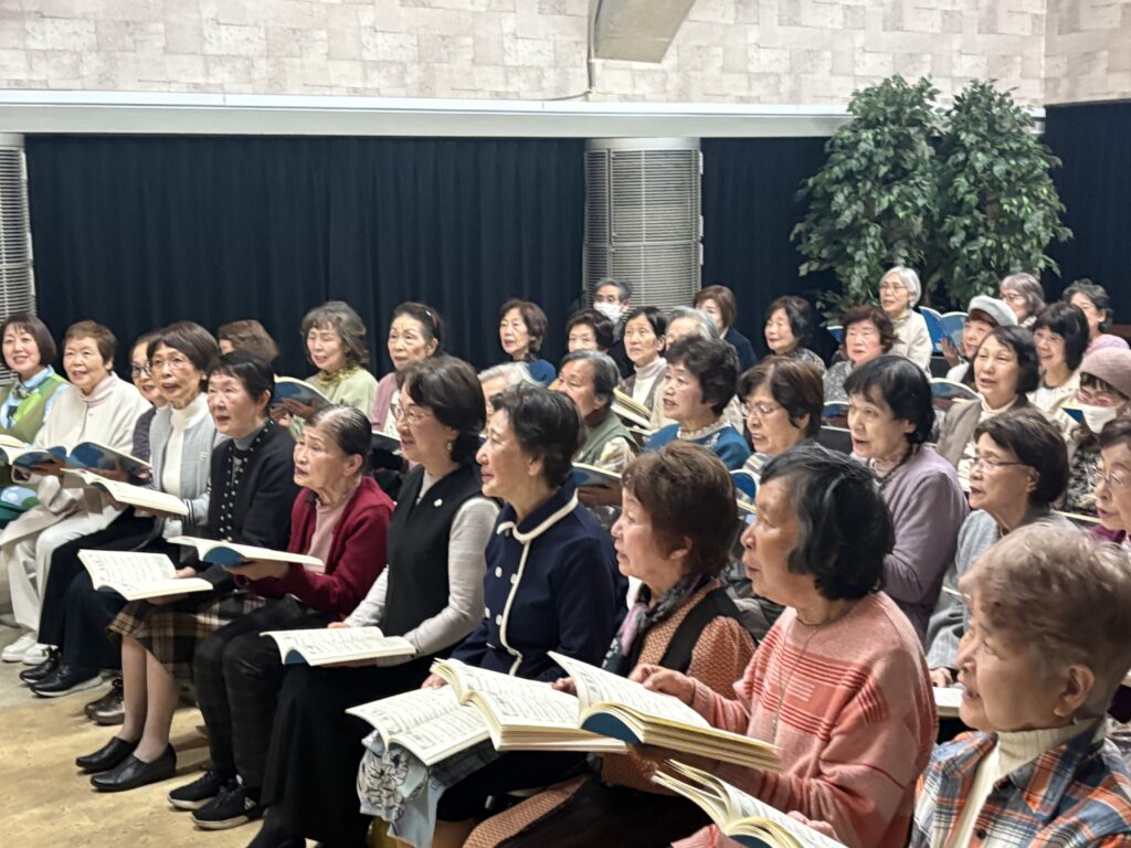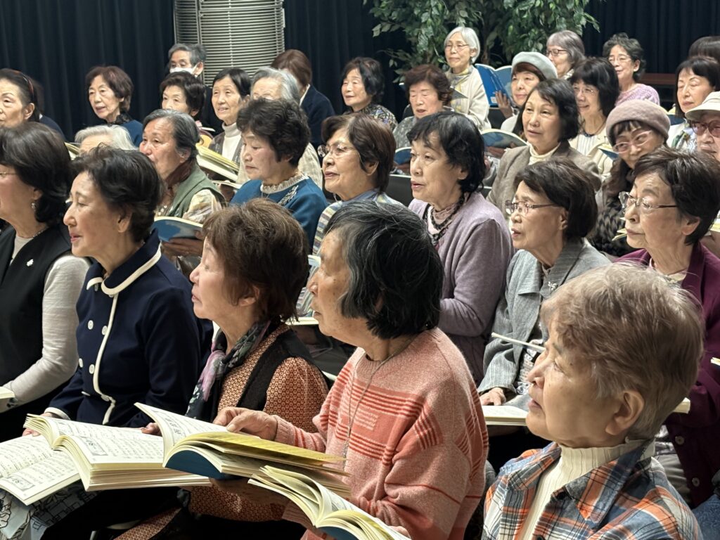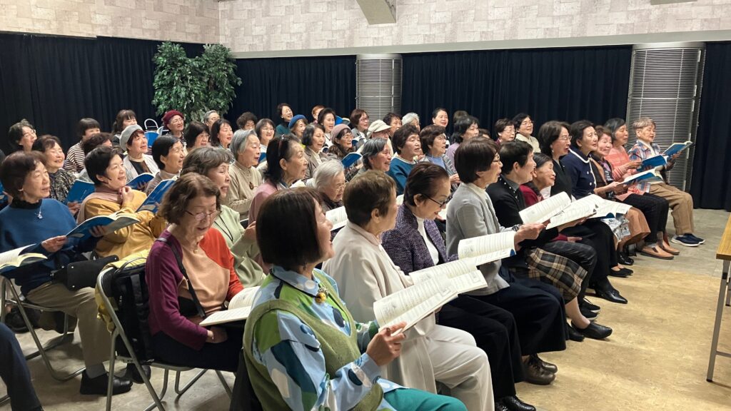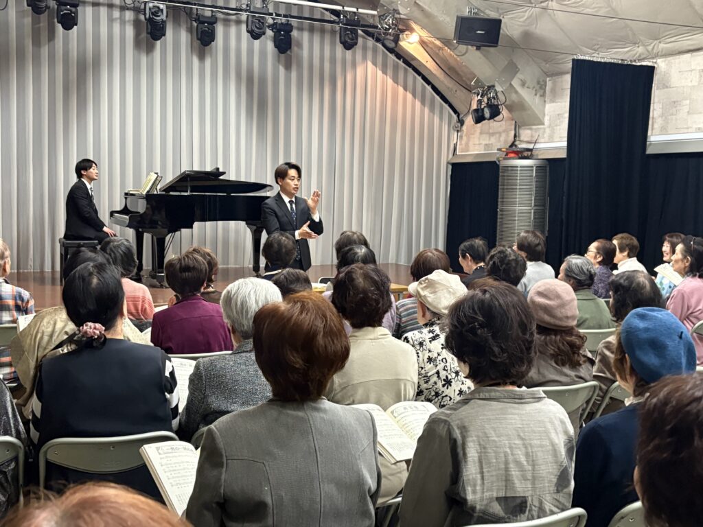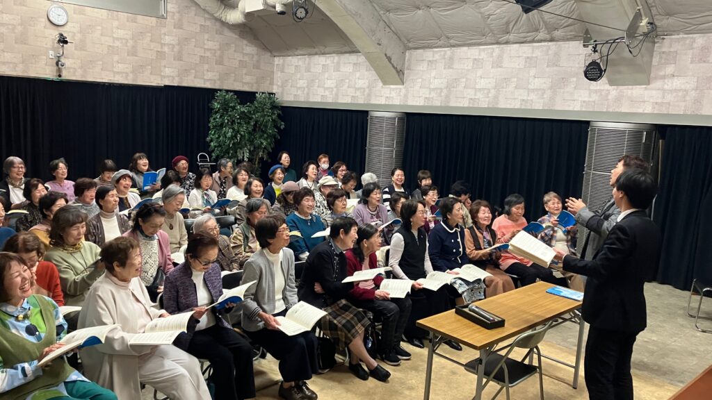 祐大指導員がアドバイスすると、 緊張と緩和がフレーズごとに移り変わり、70名の声が一つになり、穏やか時間が流れます。