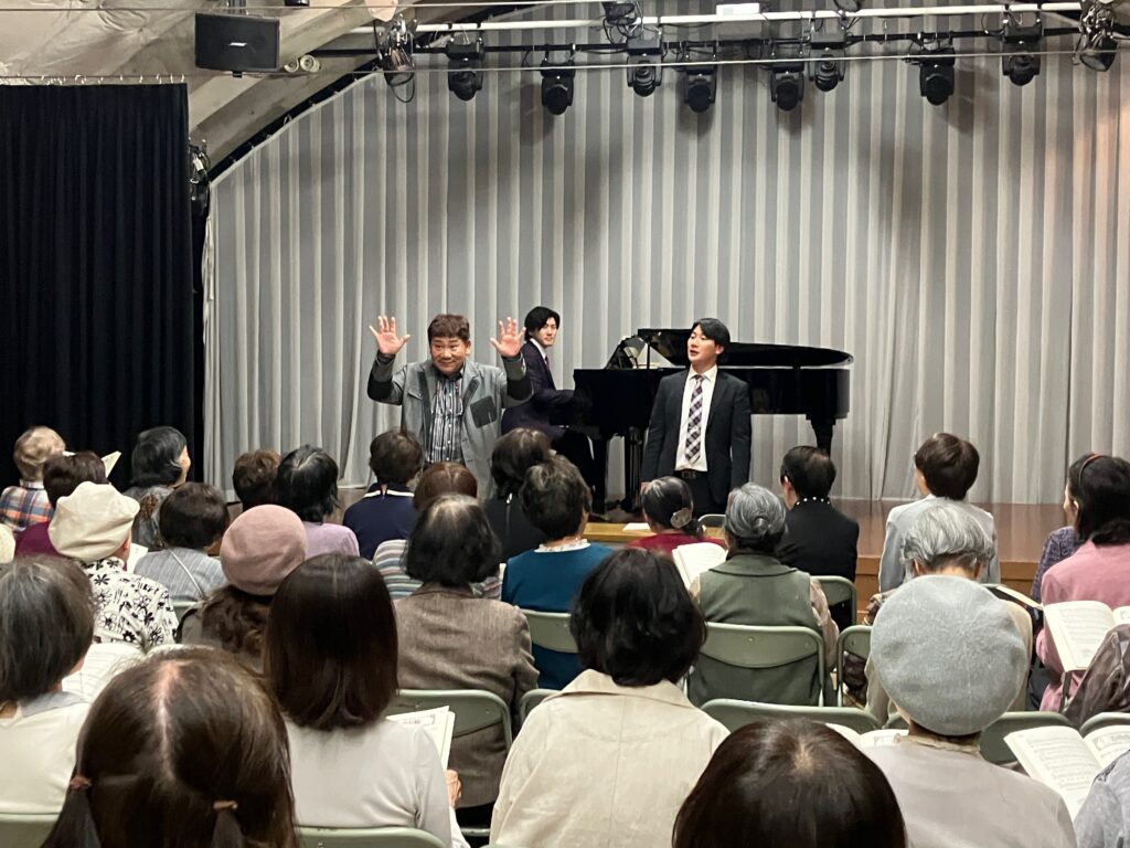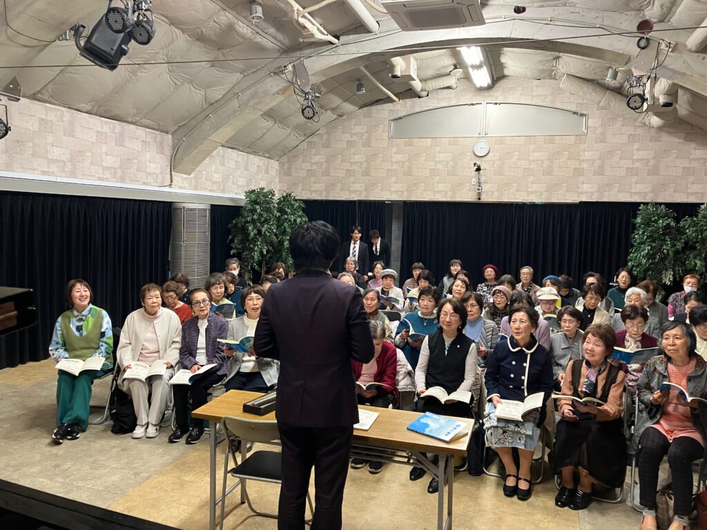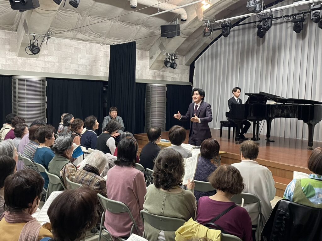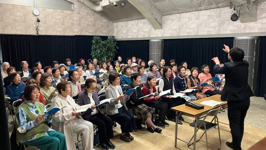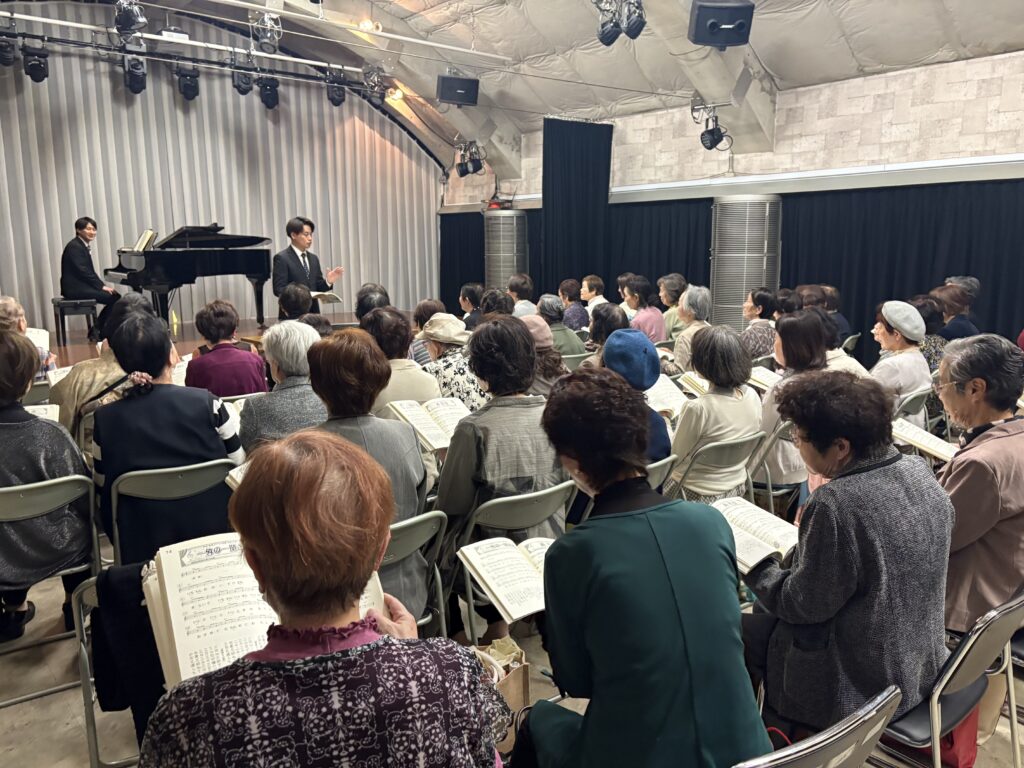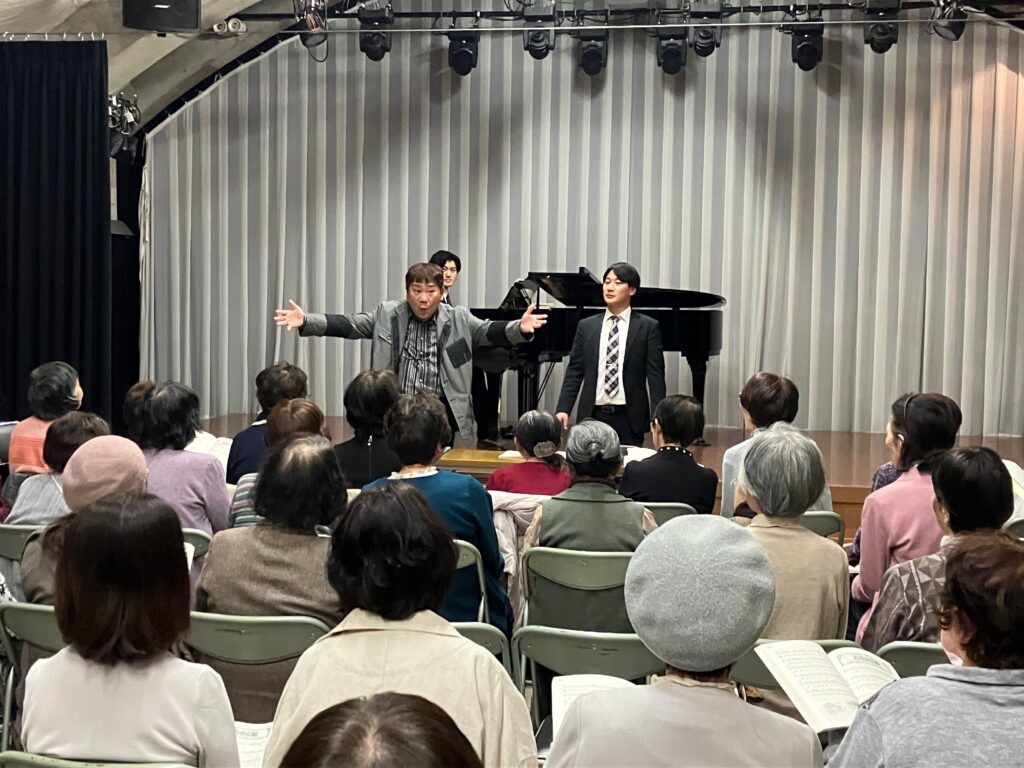 2025年4月16日(水)うえたくの会定例会議の後、うえたく先生こと上原拓也先生による若き指導員3人の為の指導者研修会が行われ、うえたくの会の会員様をはじめ祐大クラスの合唱団員の皆様70名が、モデルコーラスとなってご参加頂き、童謡コーラスの実践指導で指導者の為の勉強会が行われました。