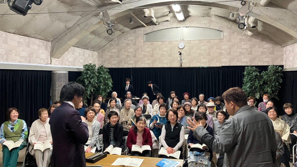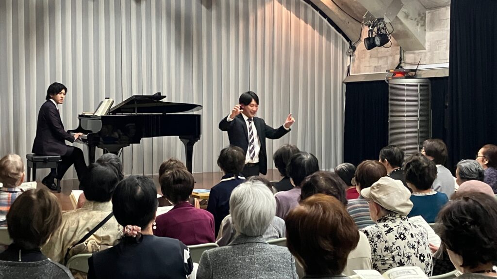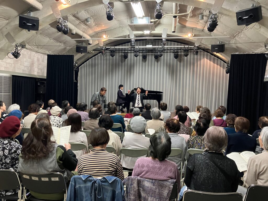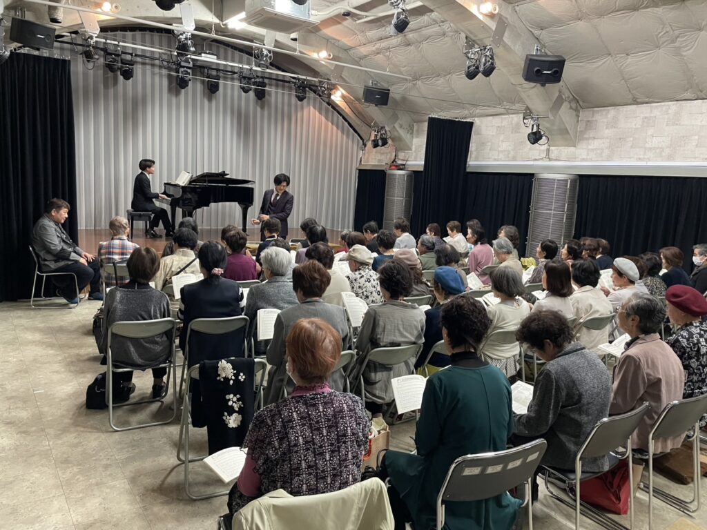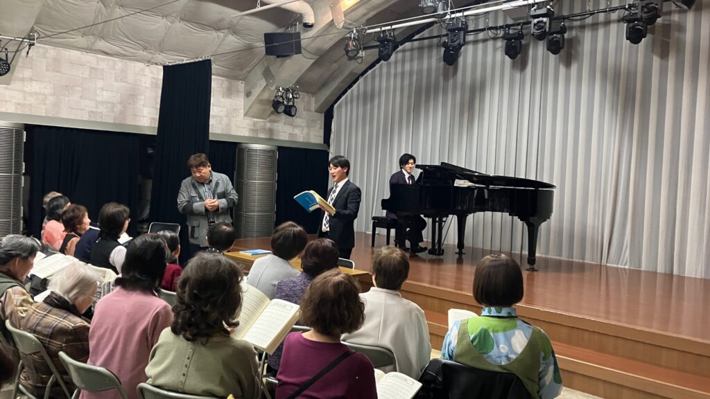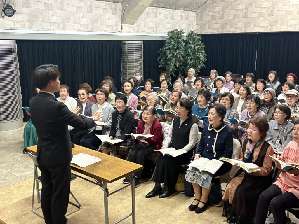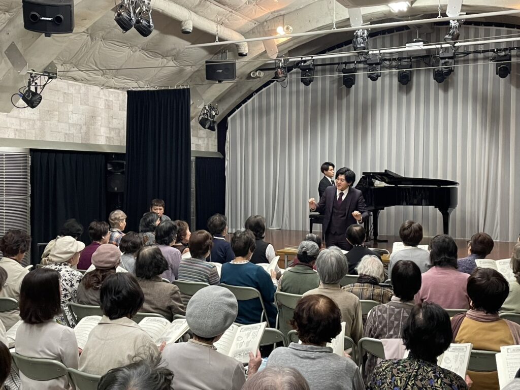 2025年4月16日(水)うえたくの会定例会議の後、うえたく先生こと上原拓也先生による若き指導員3人の為の指導者研修会が行われ、うえたくの会の会員様をはじめ祐大クラスの合唱団員の皆様70名が、モデルコーラスとなってご参加頂き、童謡コーラスの実践指導で指導者の為の勉強会が行われました。