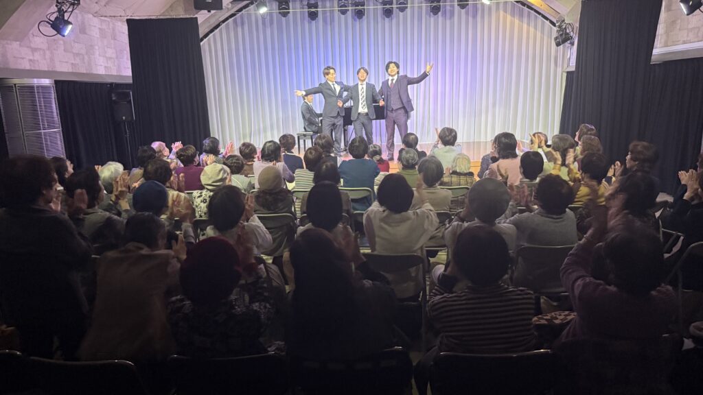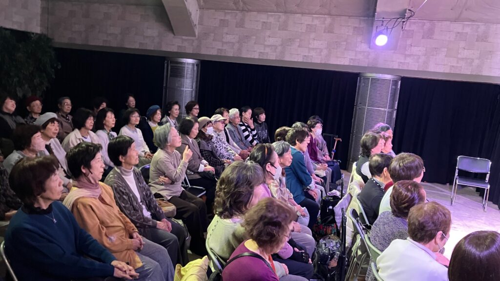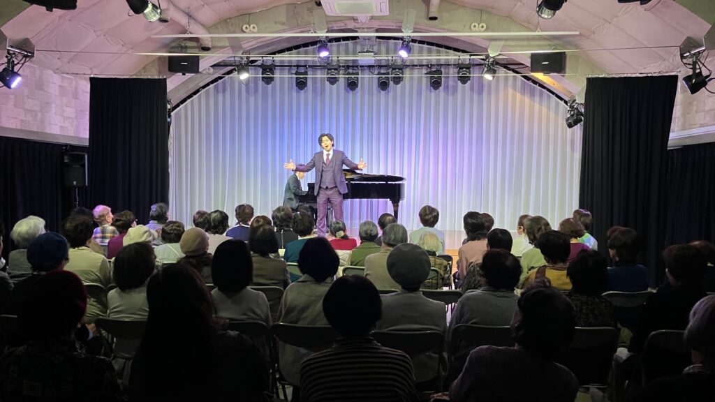童謡の易しい旋律と歌詞を、団員の皆様が母となり姉となり、語るように柔らかな表現ができるように、何度も何度もチャンレンジします。やがて、皆様の歌声は、心優しいメッセージとなって、その空間にいる誰もに伝わります。