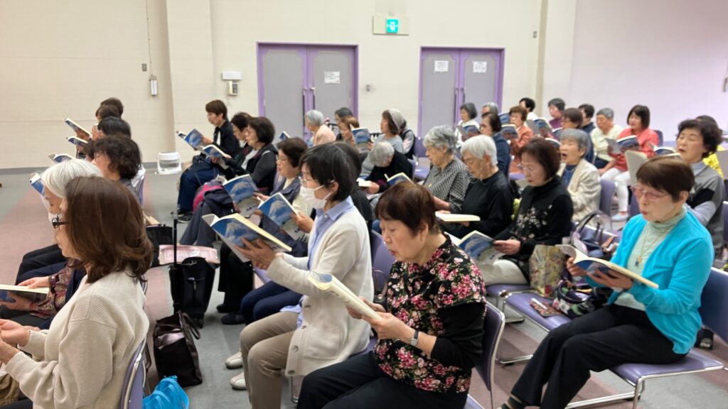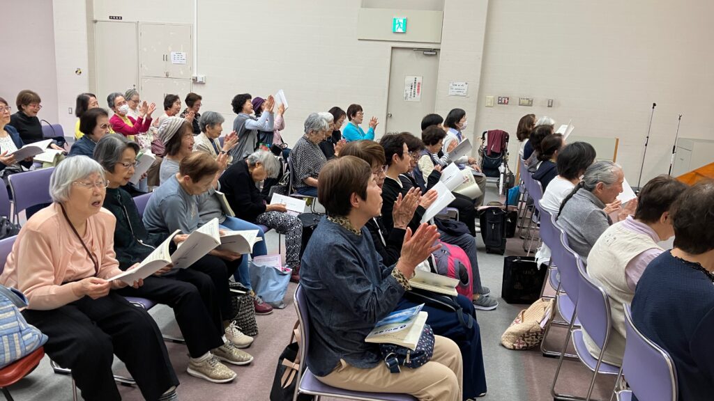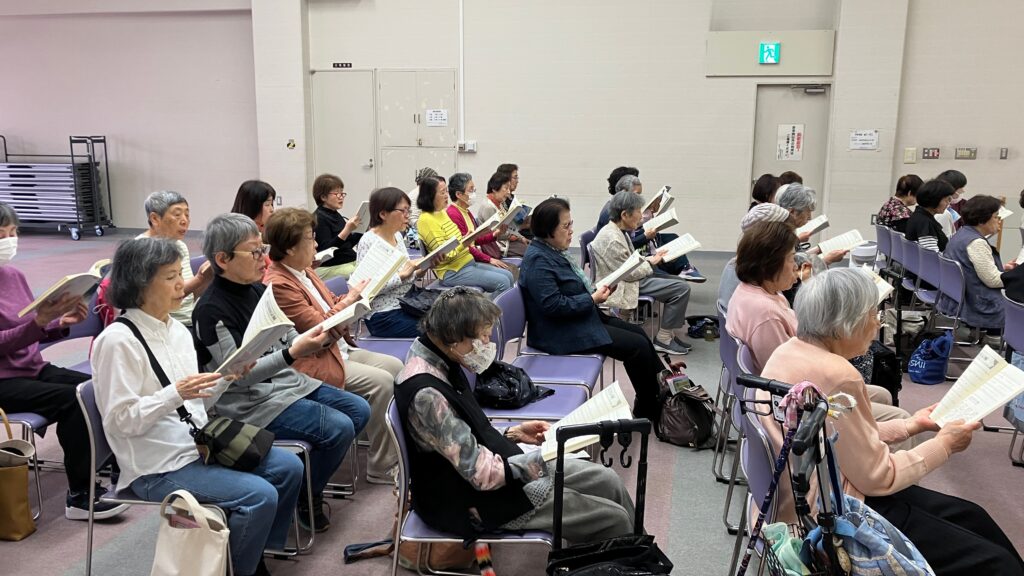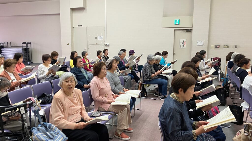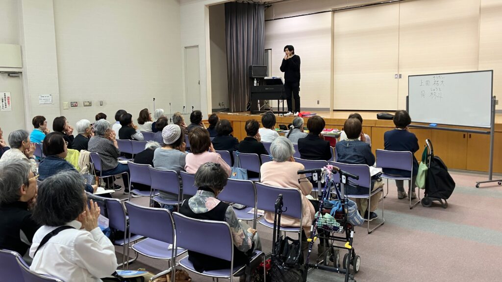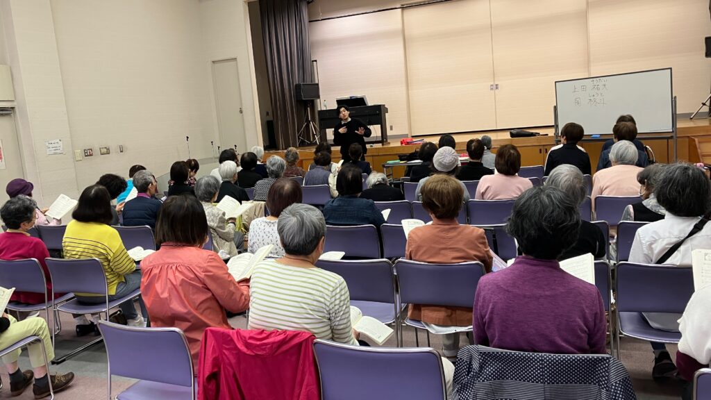 2025年4月24日(木)午前、上田祐大指導員と岡柊斗指導員の2人体制で、尼崎市女性センタートレピエの3階トレピエホールを主な拠点会場として活動している「武庫之荘童謡コーラス」の体験練習会が行われました。