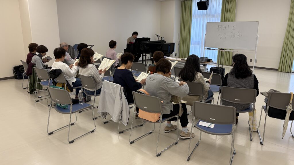 4月24日は庄内童謡コーラス4回目の活動、指導員は杵渕亮と松本義弘でした。
