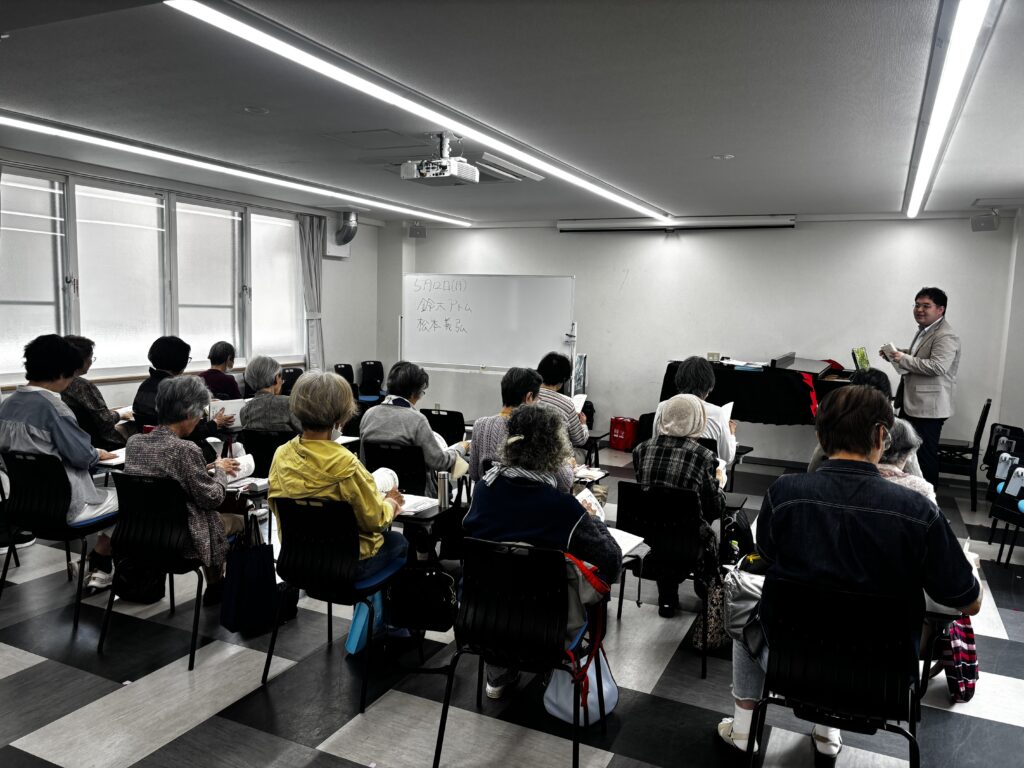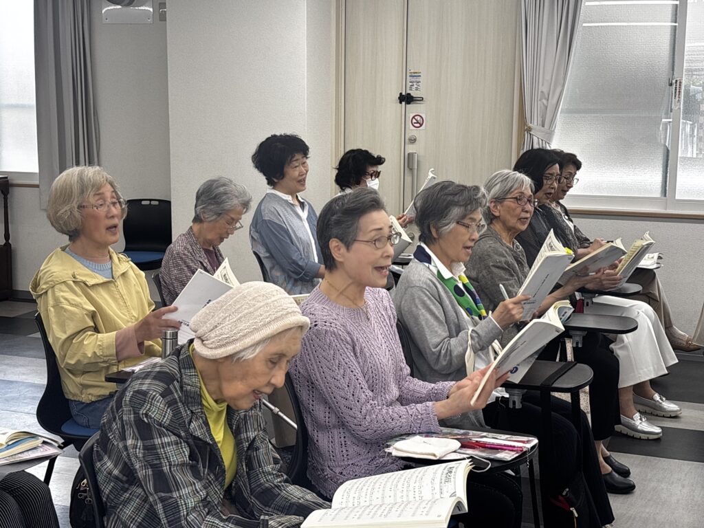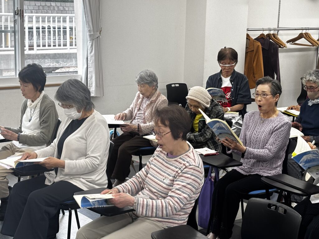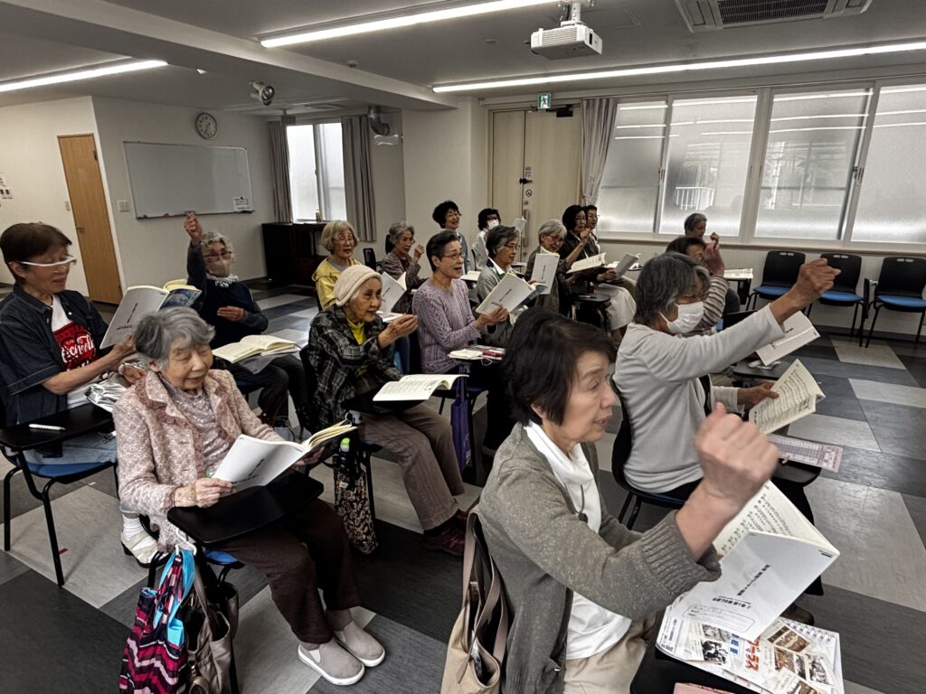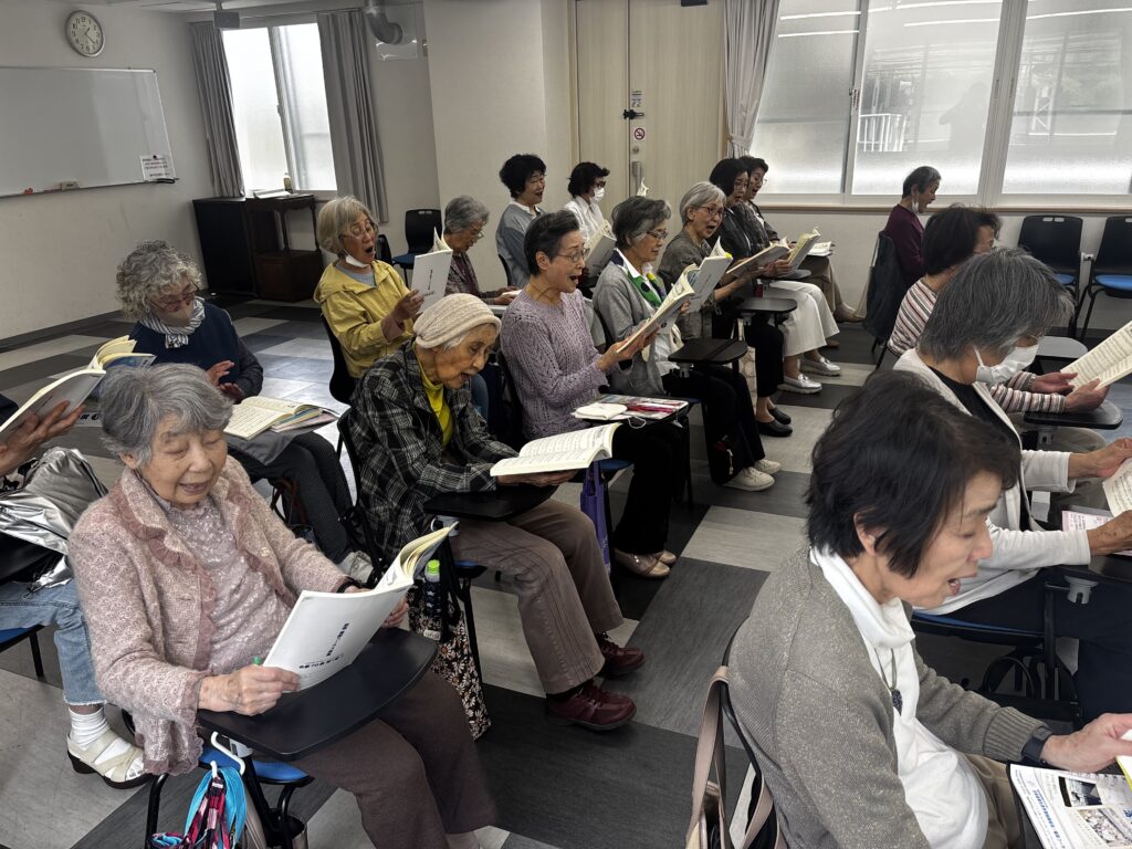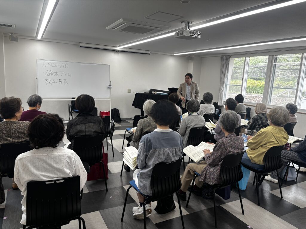 2025年5月14日(水)午後、鈴木アトム指導員と松本義弘指導員の2人体制で、神戸学生青年センター/2階 ホールを主な拠点会場として活動している「阪急六甲童謡コーラス」の活動が行われました。