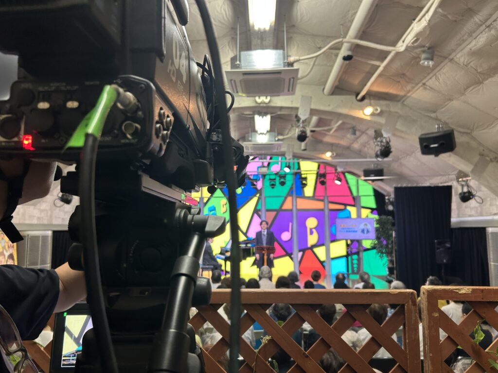 フロアディレクターは松本友経指導員です。前説&発声練習を担当してくれました。さすがにベテラン指導員の彼は、技術スタッフのカメラマンさんや音声さんが最終調整をしている間、出演参加者の皆さんの意識と意欲を高めて、フルタイムに盛り上がりをみせてくれます。
