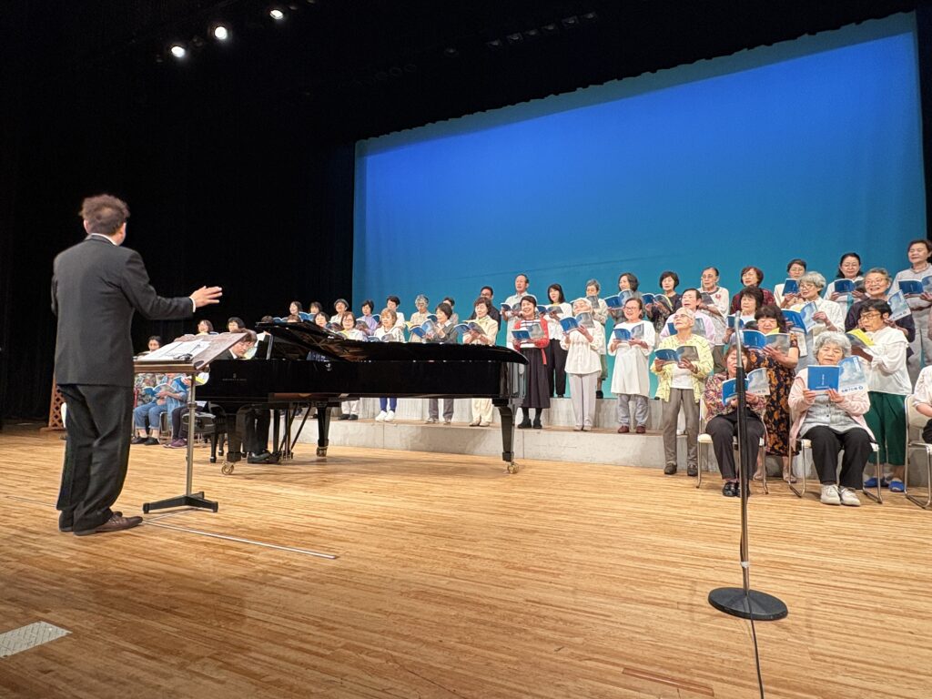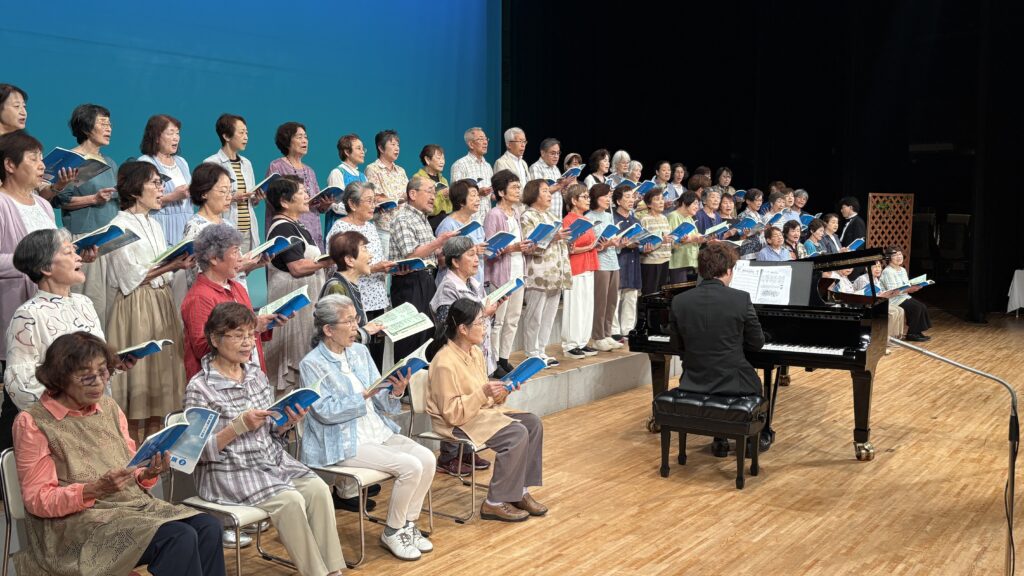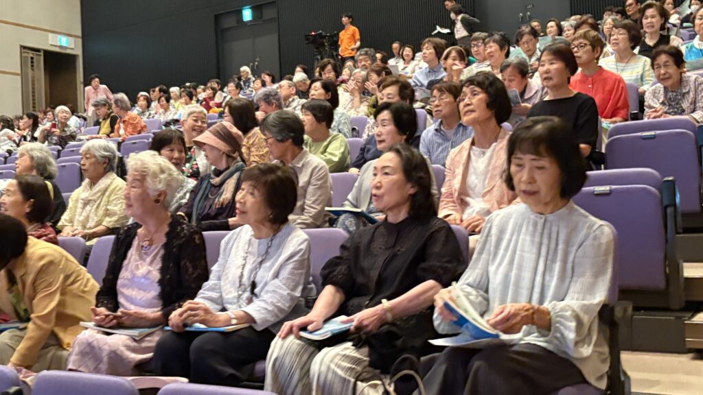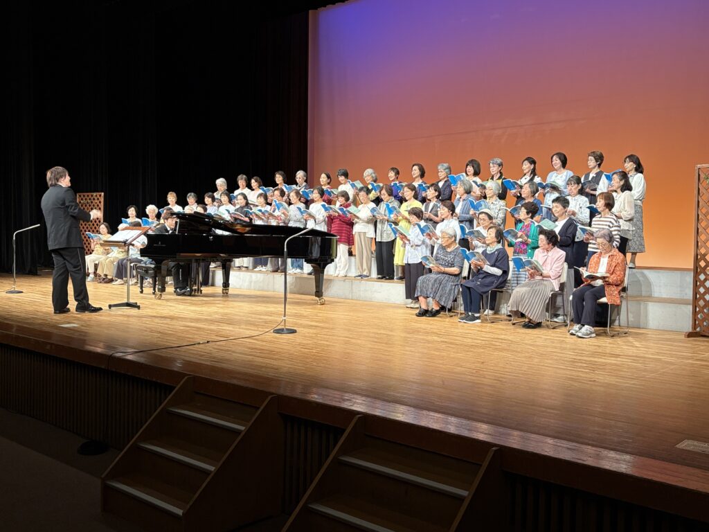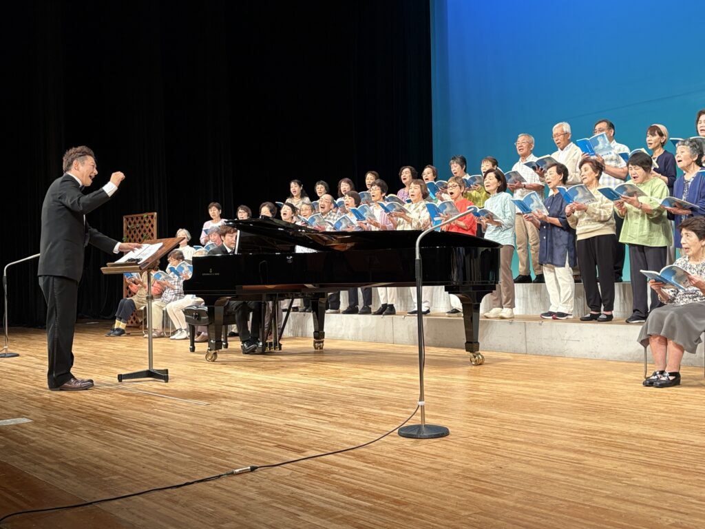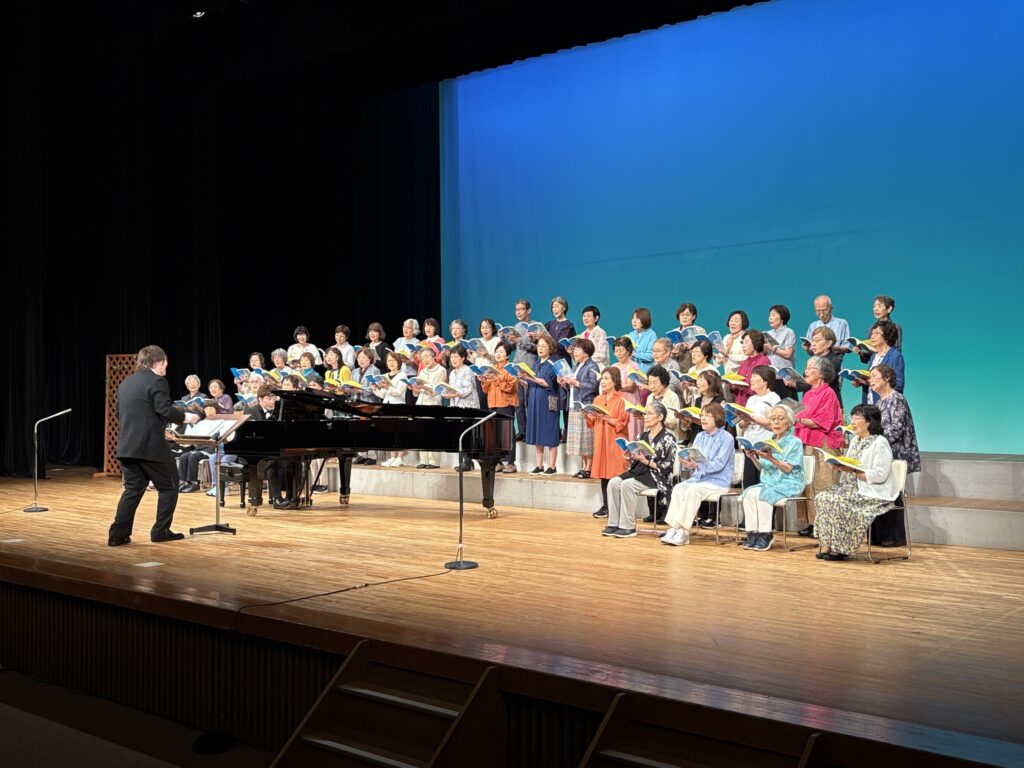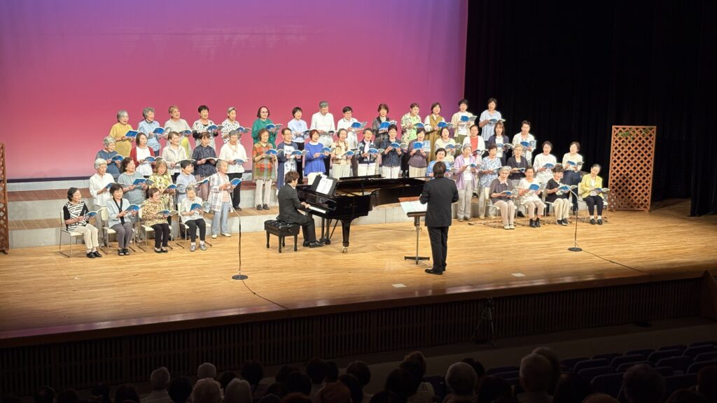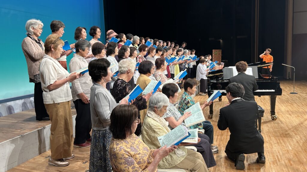 本日はお暑い中、梅雨空で足元の悪い中、童謡コーラス夏季定期公演「2025年夏の大合唱会」京都公演にご来場を賜り誠にありがとうございました。また、各地区童謡コーラスの出演参加者の皆様におかれましては、日頃の練習の成果を見事に発揮して、舞台発表のテレビ番組の収録大成功、お疲れ様でした。