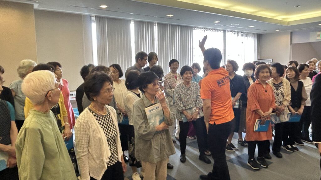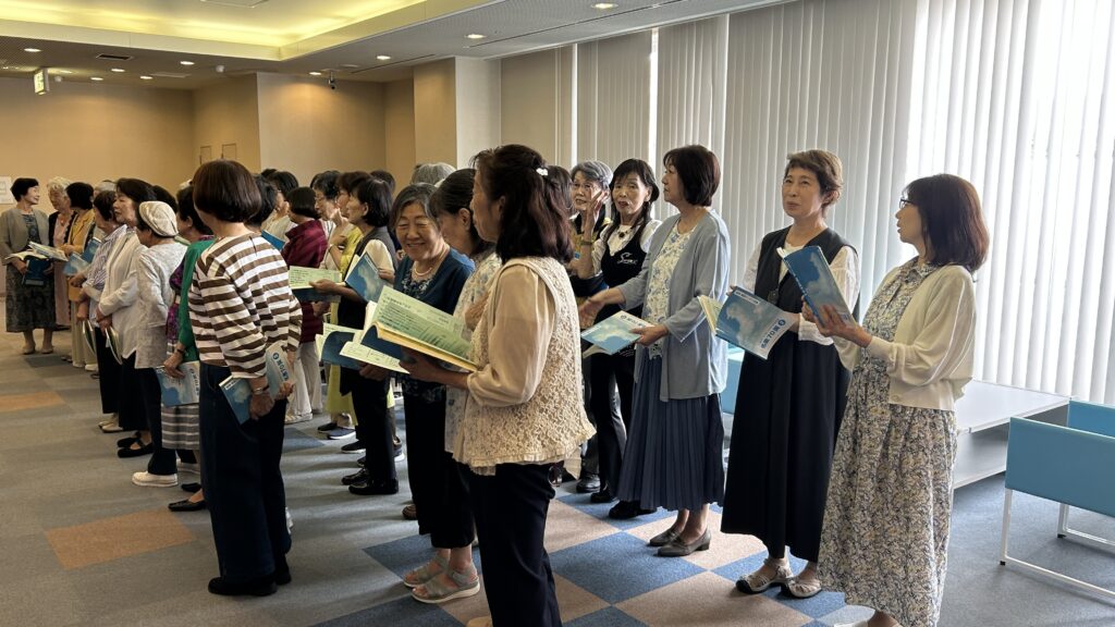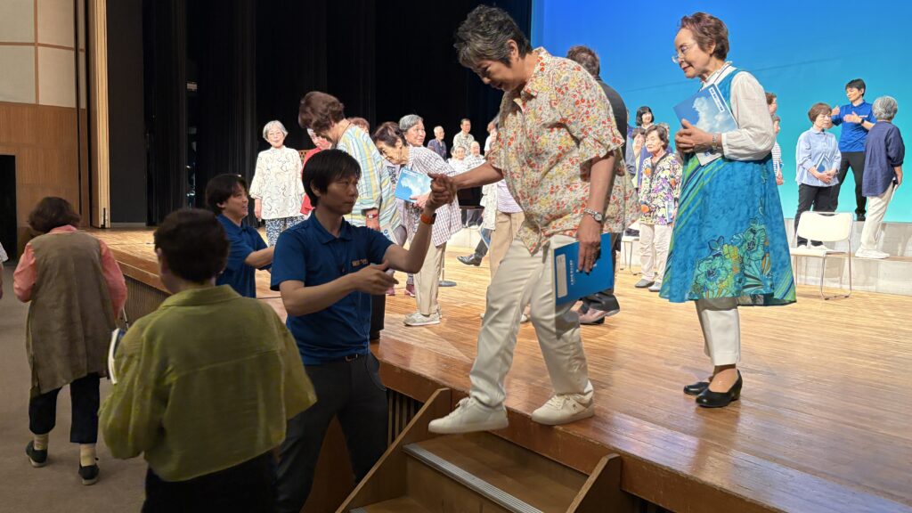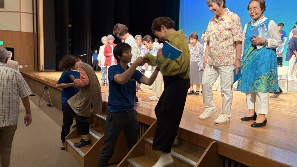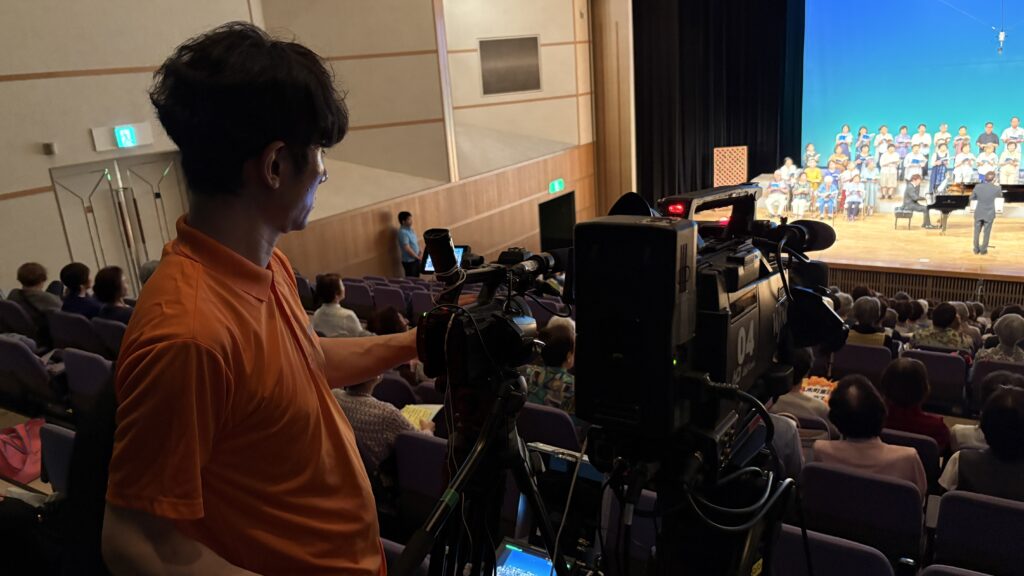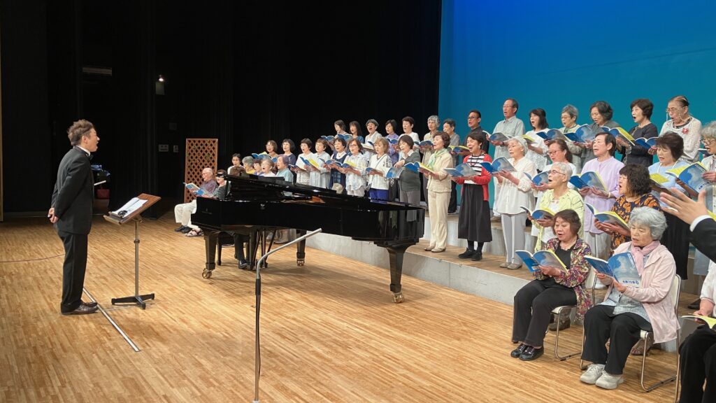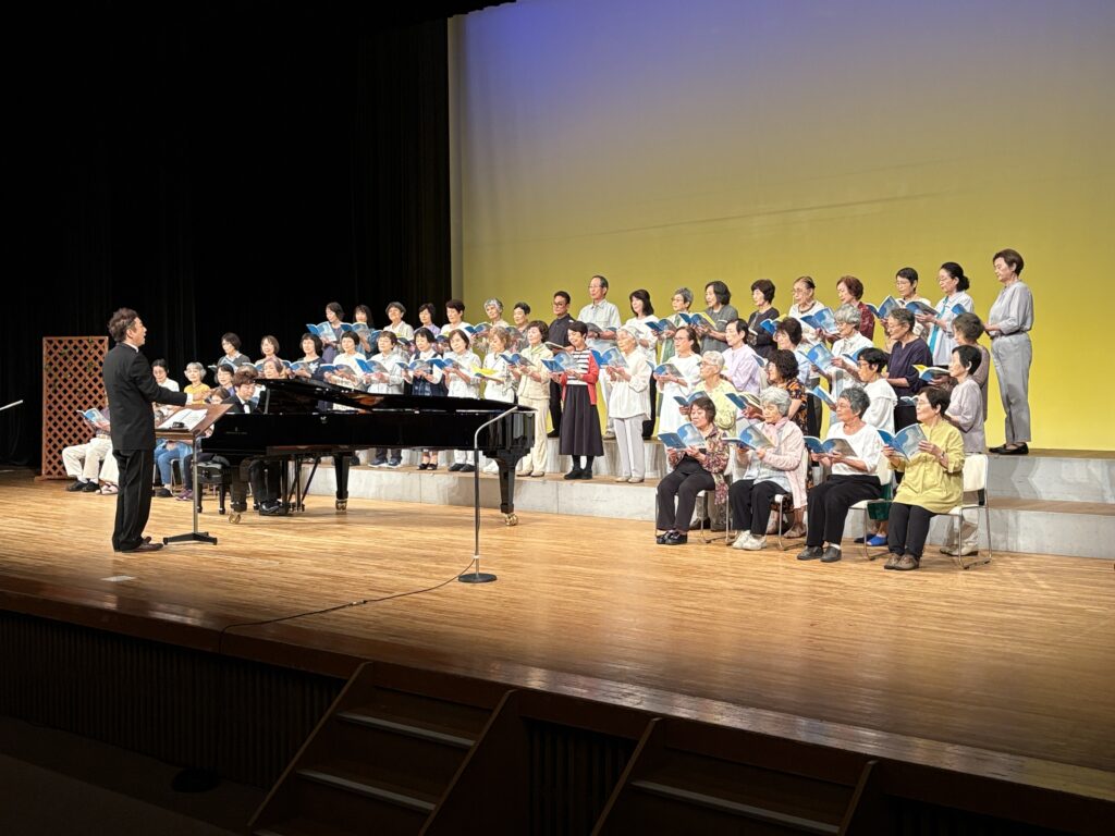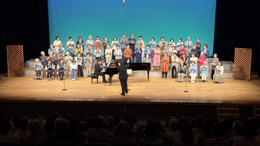 本日はお暑い中、梅雨空で足元の悪い中、童謡コーラス夏季定期公演「2025年夏の大合唱会」京都公演にご来場を賜り誠にありがとうございました。また、各地区童謡コーラスの出演参加者の皆様におかれましては、日頃の練習の成果を見事に発揮して、舞台発表のテレビ番組の収録大成功、お疲れ様でした。