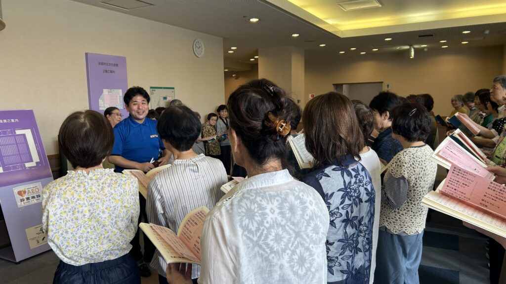 2025年6月26日(木)13時00分から、京都市北文化会館ホールにおきまして、京都地区の各地童謡コーラスから歌仲間の皆様がおよそ400名大集結、日頃の練習の成果をテレビで発表する「テレビ発表会」の収録合唱会に挑みました!