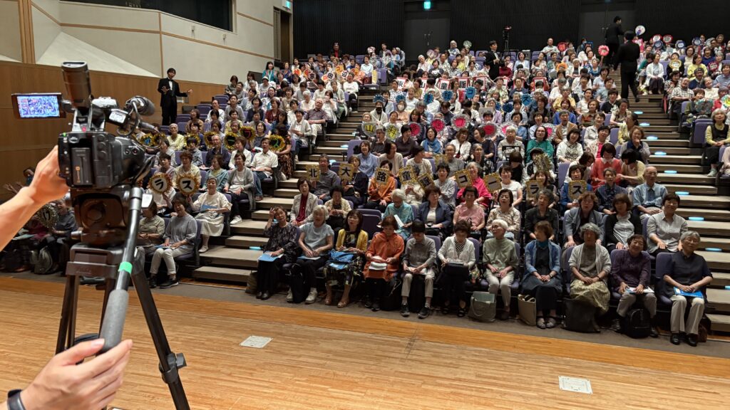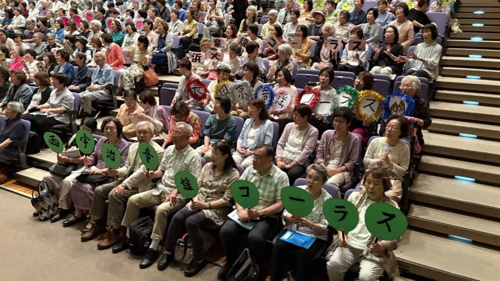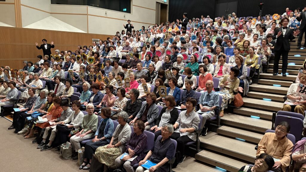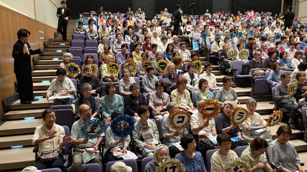 2025年6月26日(木)13時00分から、京都市北文化会館ホールにおきまして、京都地区の各地童謡コーラスから歌仲間の皆様が集結、500名の大合唱会に挑みました!