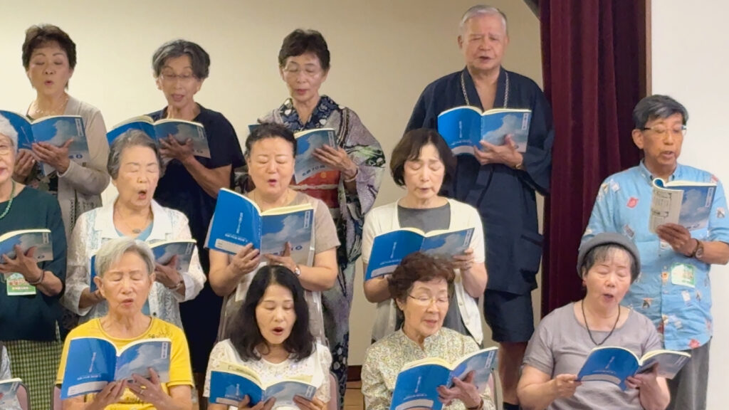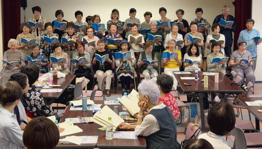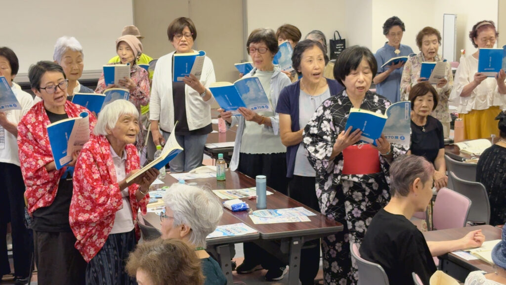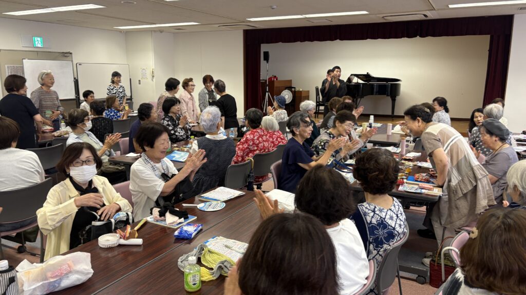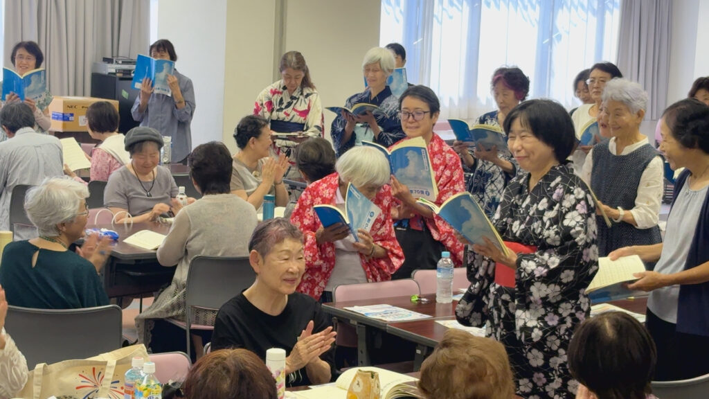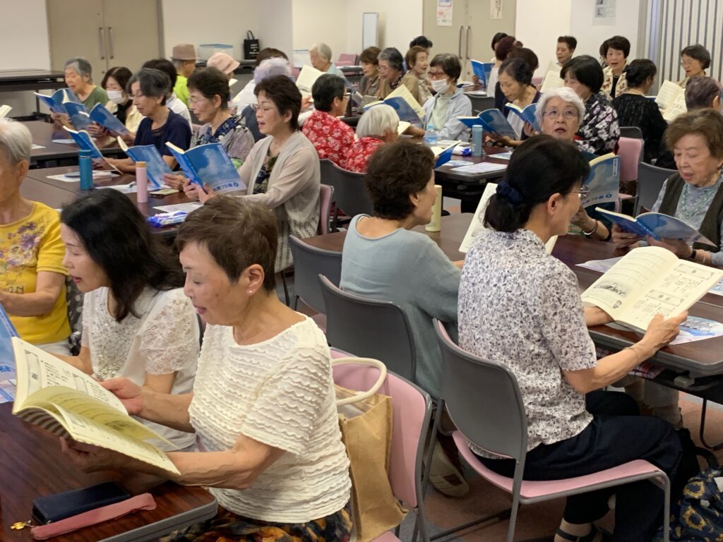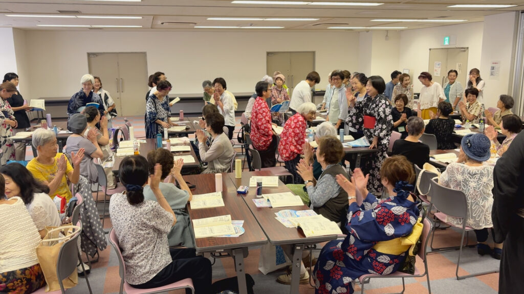 2025年7月23日(水)午後2時00分〜3時30分、ノバティホールのノバティ長野南館3階多目的ホールにおいて、童謡コーラスの2025年納涼会「河内長野祭」が行われました。この会場は、河内長野童謡コーラスの活動拠点でもあり、月曜日の朝10時00分から月2〜3回のペースで活動しています。本日は、近隣の姉妹コーラスからも参加され大人数での合唱会が実現しました。