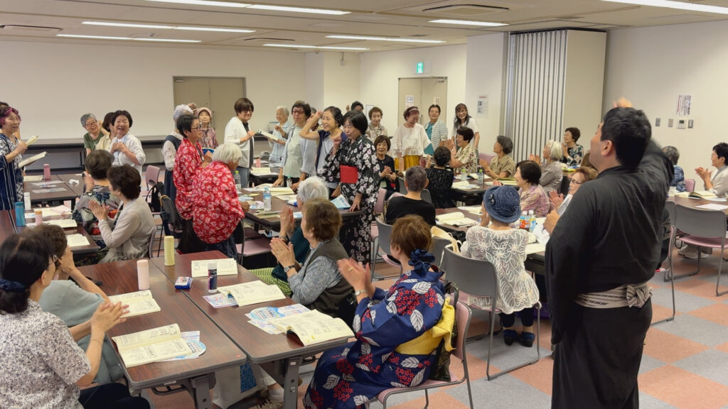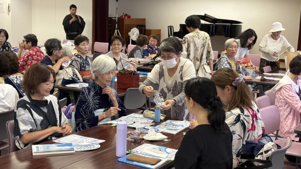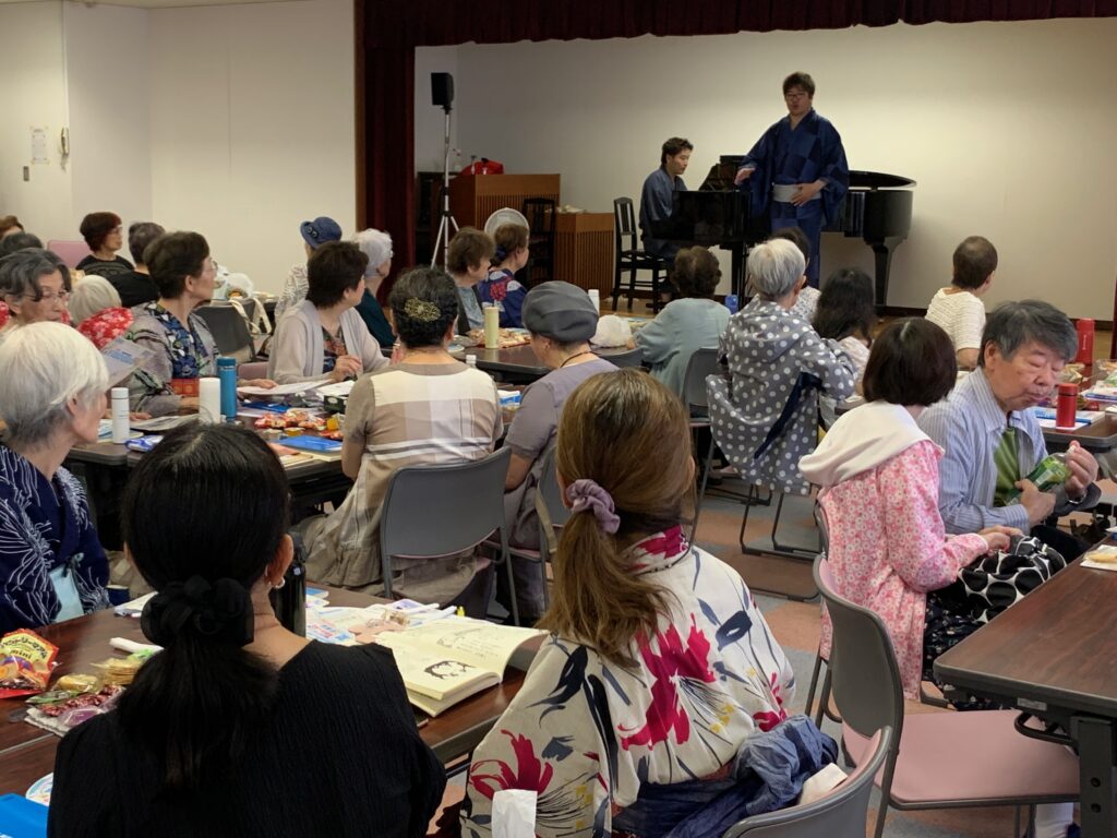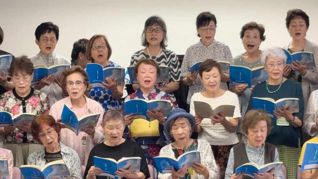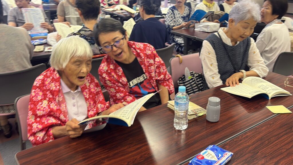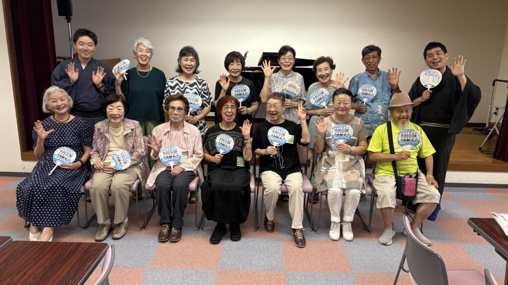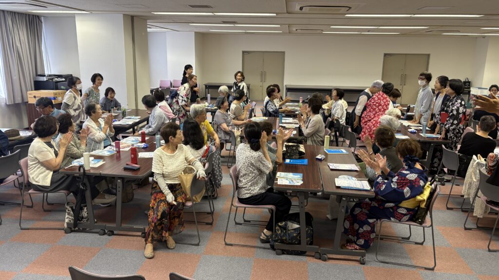 2025年7月23日(水)午後2時00分〜3時30分、ノバティホールのノバティ長野南館3階多目的ホールにおいて、童謡コーラスの2025年納涼会「河内長野祭」が行われました。この会場は、河内長野童謡コーラスの活動拠点でもあり、月曜日の朝10時00分から月2〜3回のペースで活動しています。本日は、近隣の姉妹コーラスからも参加され大人数での合唱会が実現しました。