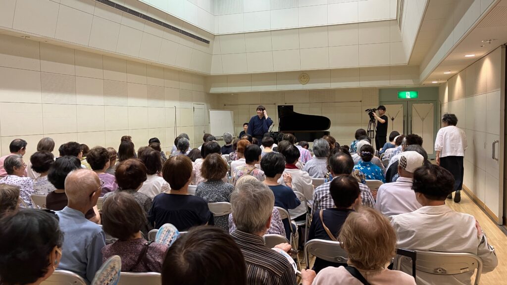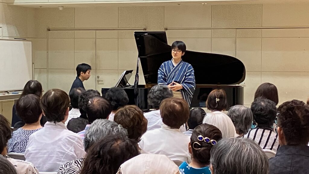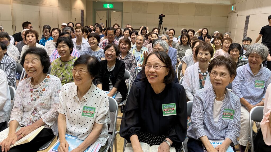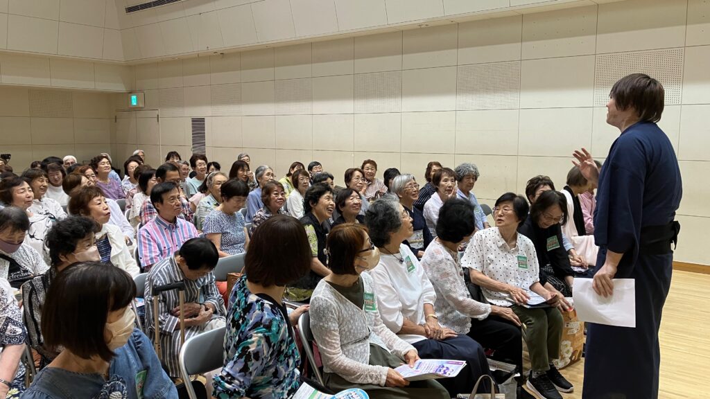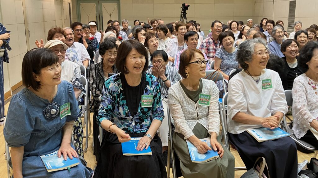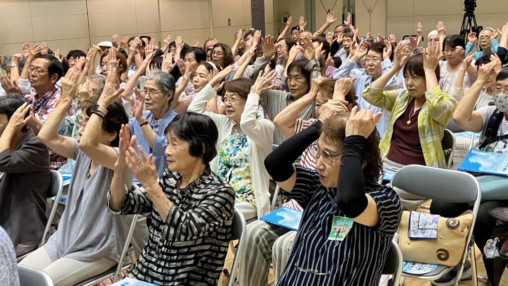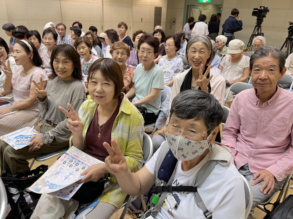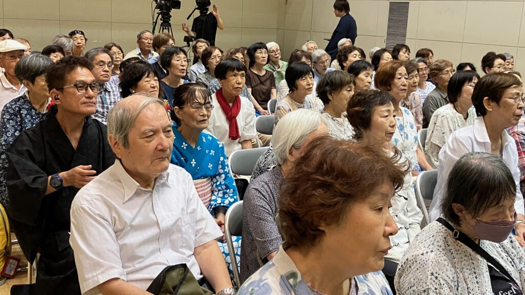 2025年8月4日(月)午後2時00分〜3時30分、京都市北文化会館の3階 創造活動室において、童謡コーラスの2025年納涼会「京都祭り」が行われました。この会場は、北大路童謡コーラスの活動拠点でもあり、月曜日の朝10時00分から月2〜3回のペースで活動しています。本日は、近隣の姉妹コーラスからも参加され大人数での合唱会が実現しました。