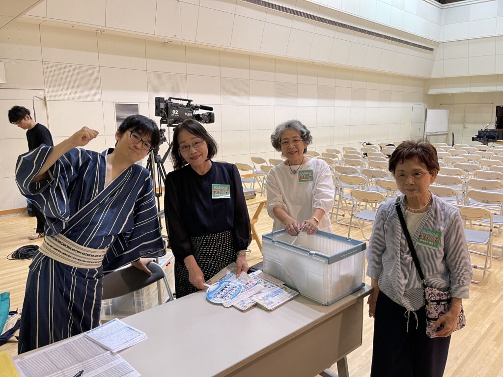 北大路童謡コーラスの納涼会実行委員の皆様、午前中のコーラス活動後でもあり、そして暑い中、早くから会場設営→参加者の誘導、受付までお世話役をご苦労様でした。皆様のご協力により事故なく怪我なく準備が整いましたので定刻で納涼会スタートとなりました。ありがとうございました。