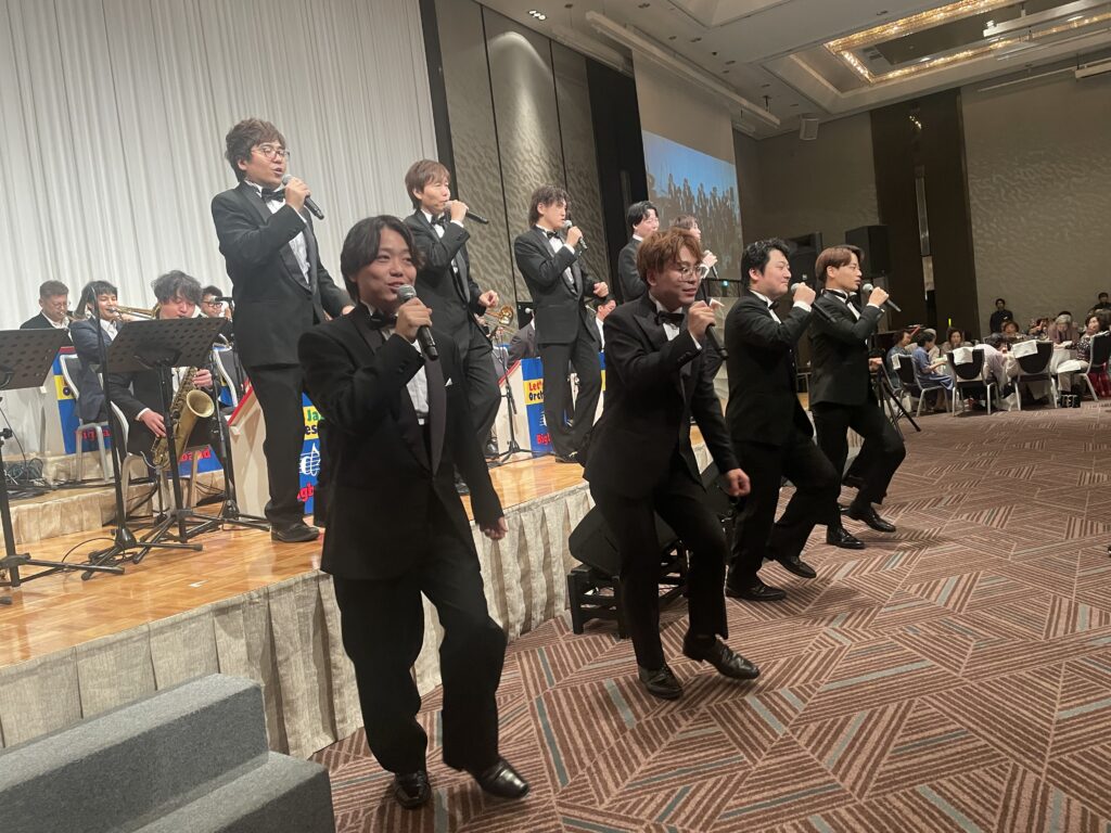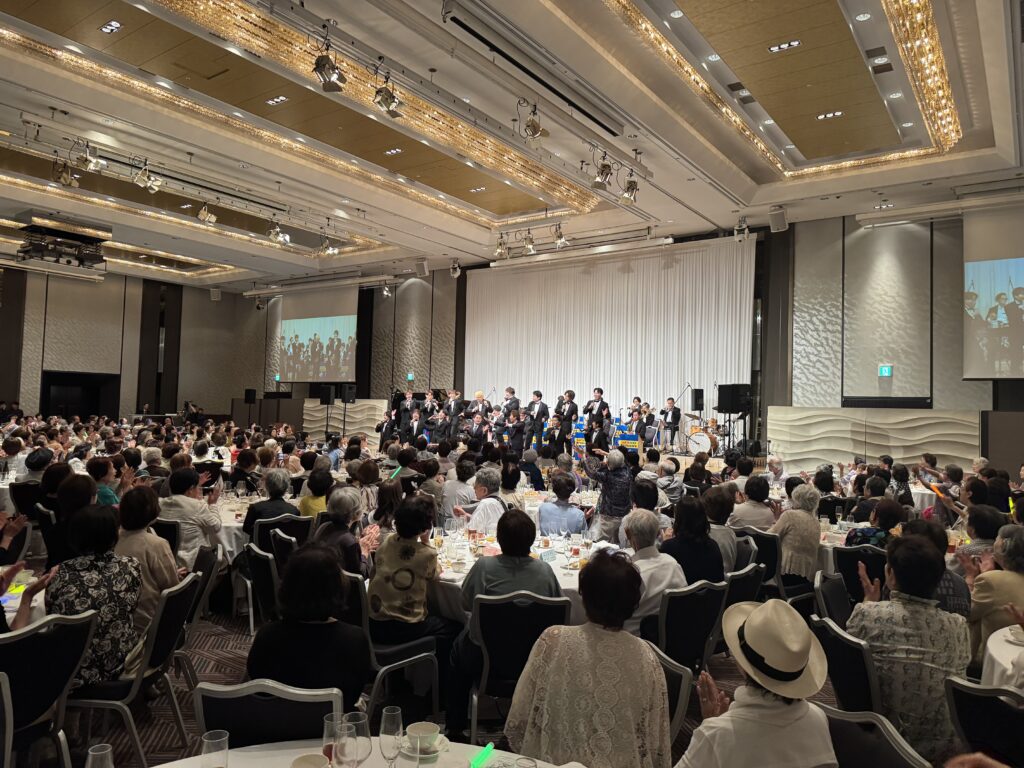 2025年7月30日(水)午後、大阪ヒルトンホテル5階「桜の間」におきまして、童謡コーラスの歌仲間による「夏の合唱会2025全公演成功祝賀会」として、さらには2025年上半期のご活躍ご功績を称えて、みんなの音楽会の皆様と共に「ビックバンドジャズサマーパーティー2025年夏のパーティー」が行われました。関西各地の童謡コーラスの有志の皆様、みんなの音楽会の正会員の皆様約500名が集い大盛況となりました。
