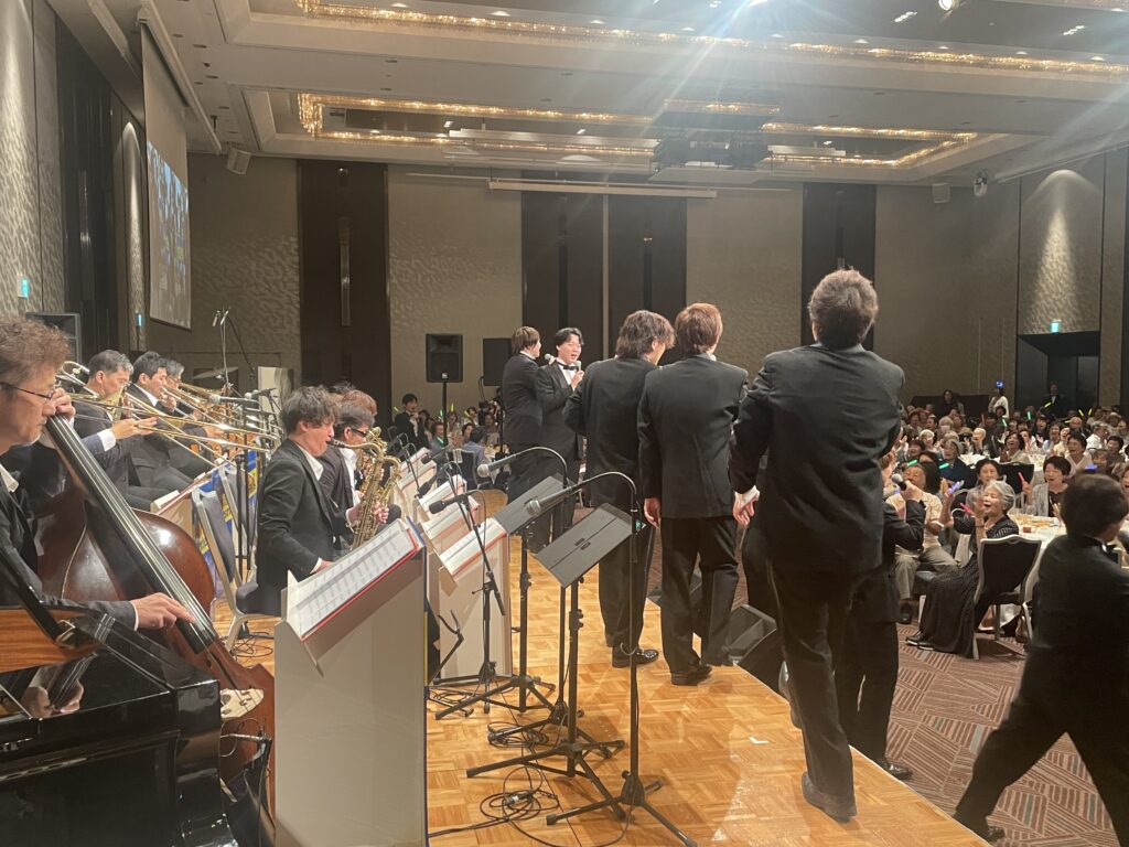 本日は、ご多用の中、またお暑い中、広く遠くからも「ビックバンドジャズサマーパーティー2025年夏のパーティー」にご来場ご参加賜りまして誠に有難うございました。各地区童謡コーラスの協賛者の皆様を始め、みんなの音楽会正会員の皆様、上原拓也後援会うえたくの会の皆様、出演者並びにNPO職員の皆様、総勢500名超える皆々様とこの夏最高の暑さ、白熱のステージ、ヒルトンホテル大阪様の最高のホテルサービスと共に最高の1日を過ごせましたことを心より感謝申し上げます。