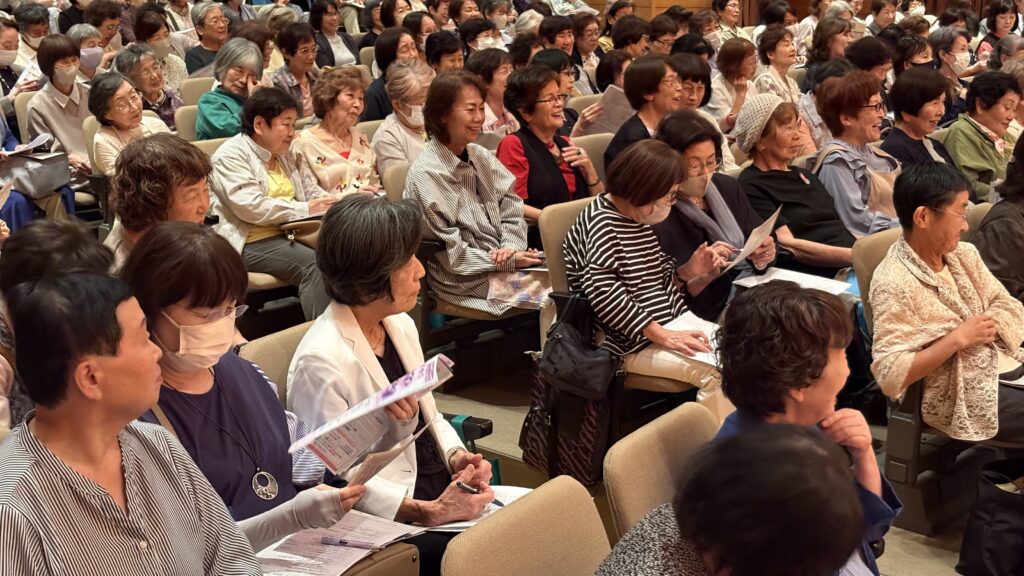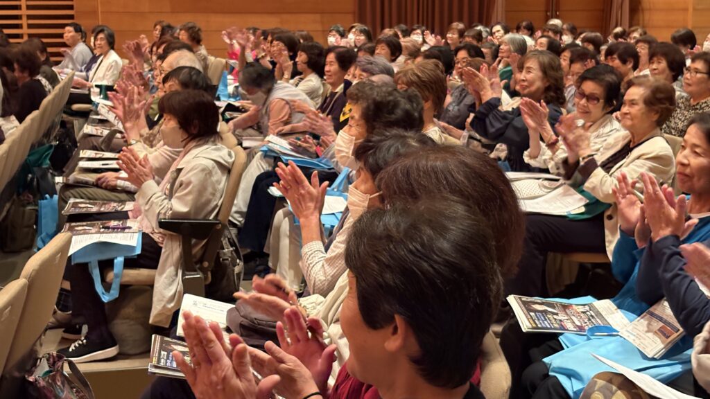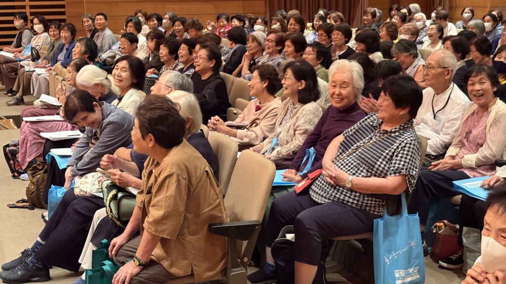 2時間近い長時間のノンストップの講話の中で、ユーモア溢れる進行とコーラス活動のアルアル話において笑い声が絶えませんでした。
