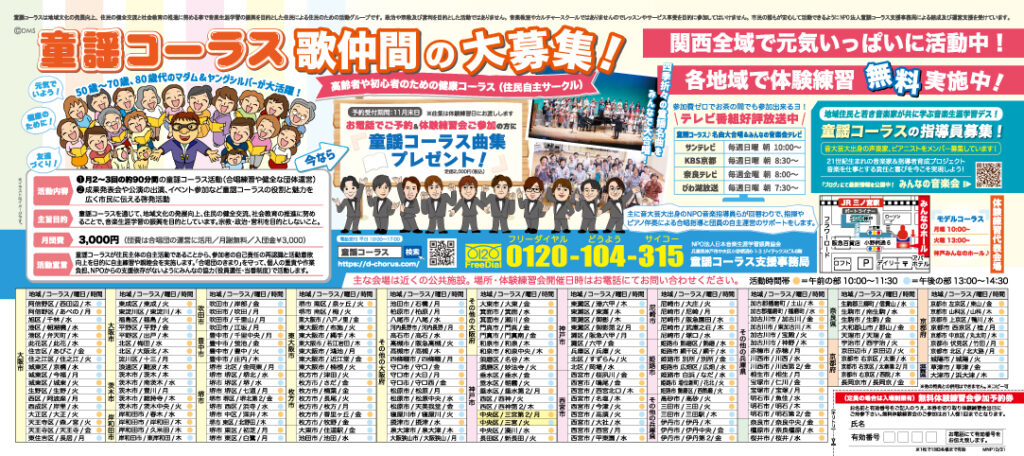 関西地区(伊丹・神戸空港)と関東・中部東海地区の童謡コーラスの歌仲間100名様限定
