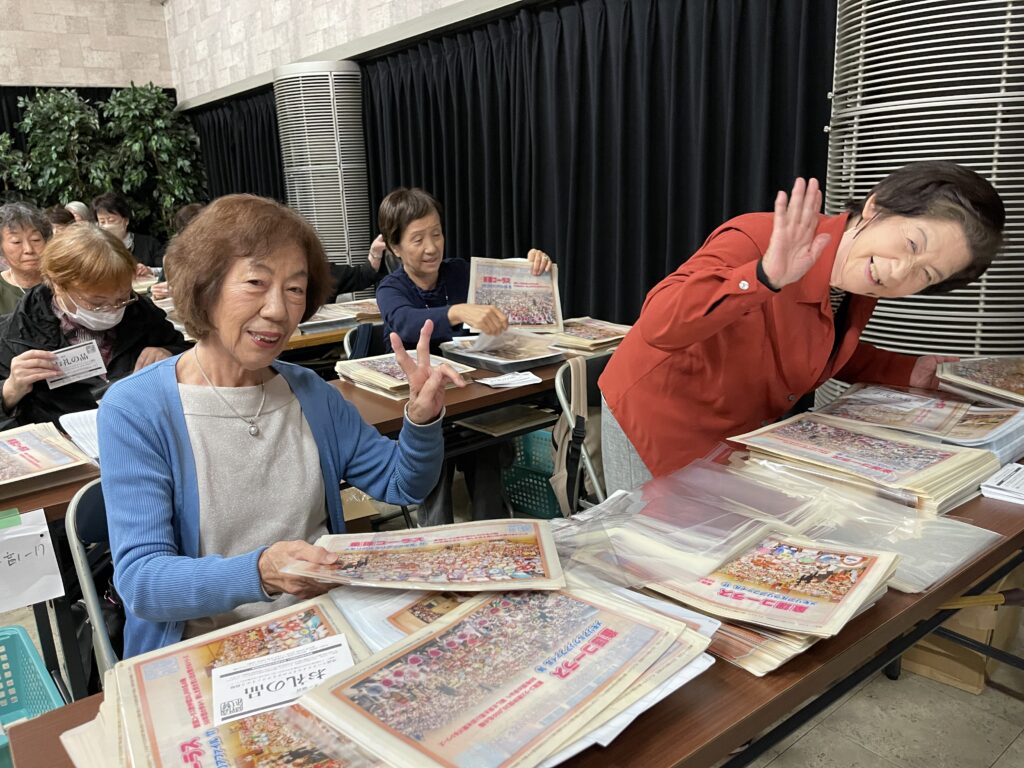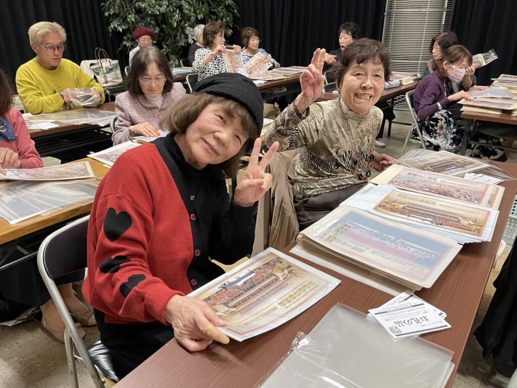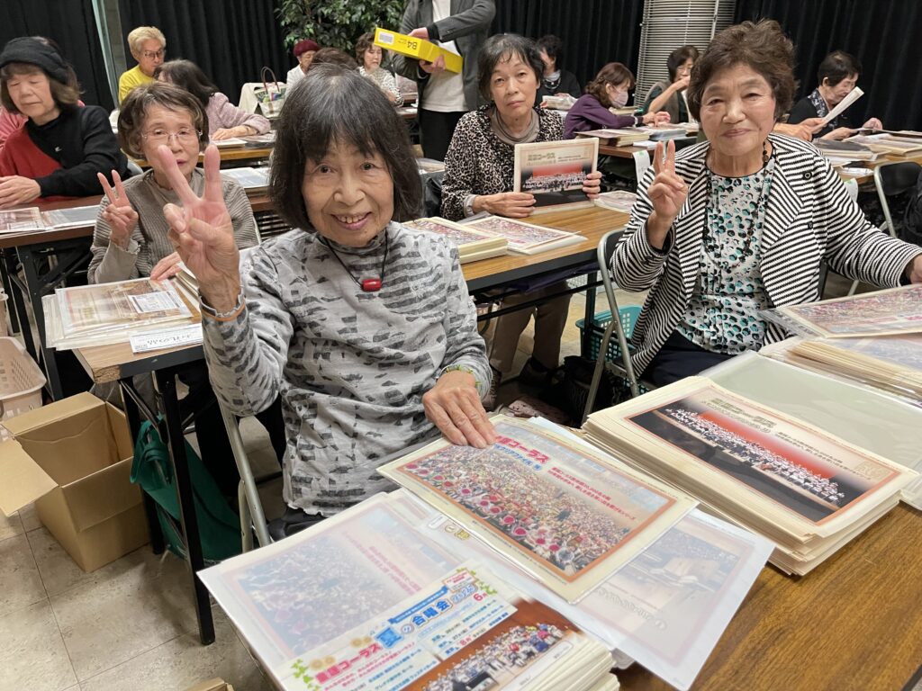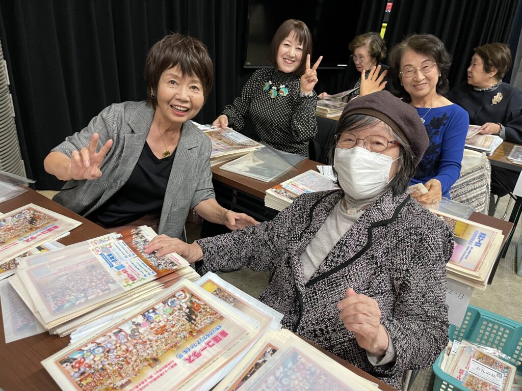昼食休憩のお弁当会を挟んで、午後からは協賛カレンダー運動の為の「御礼の品」OPP袋詰め作業を行いました。童謡コーラスの啓発活動として、今年の合唱会や舞台発表、音楽会の活動写真がオリジナルのクリアファイルとなった「メモリアルクリアファイル」を3つの種類を1セットにして配布されます。