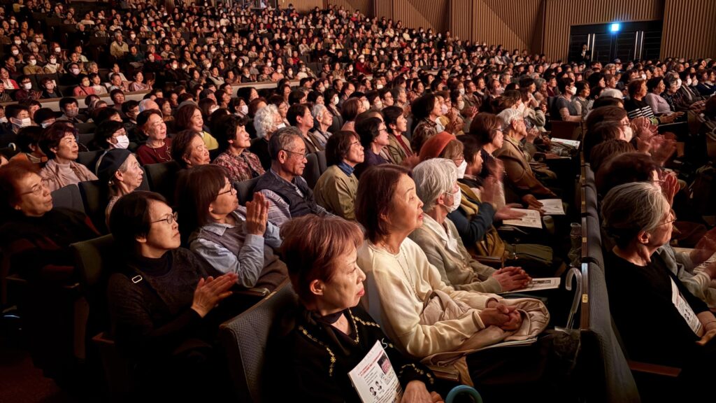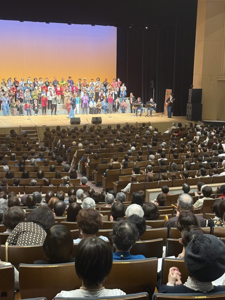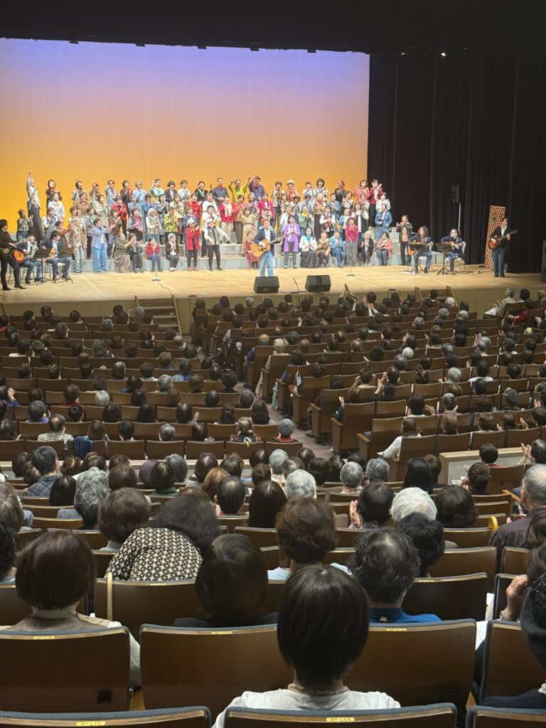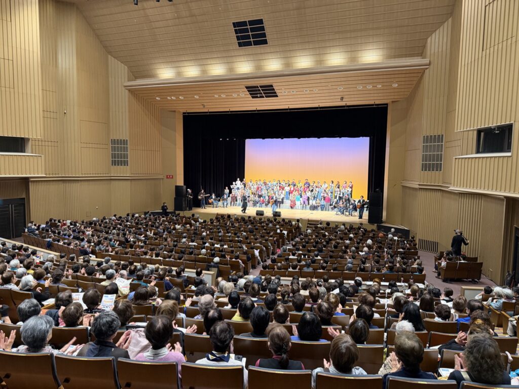 2025年10月31日(金)午後、大阪国際交流センター大ホールにおいて開催された「第34回どみその音楽祭」(主催:株式会社どみそ音楽事務所)のオープニング特別プログラムで、童謡コーラス『音楽祭記念コーラス2025』が出演して、満員御礼の客席から大声援、拍手喝采!!の舞台大成功をおさめました!