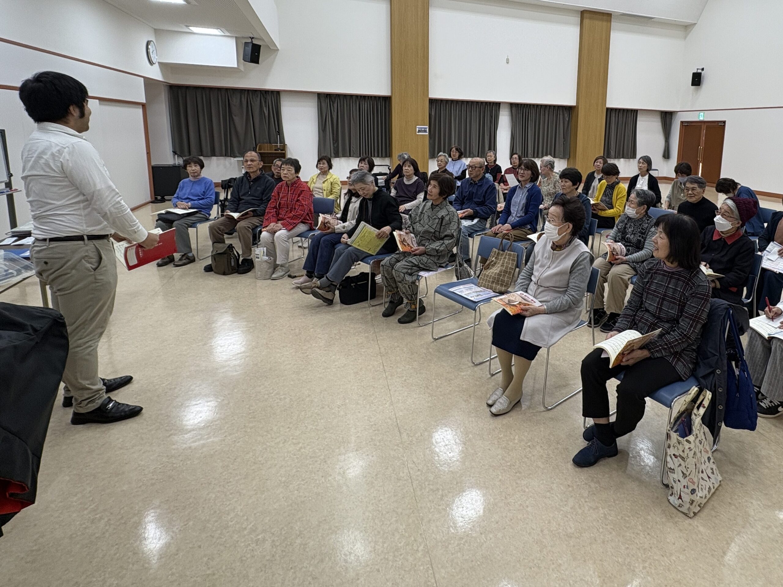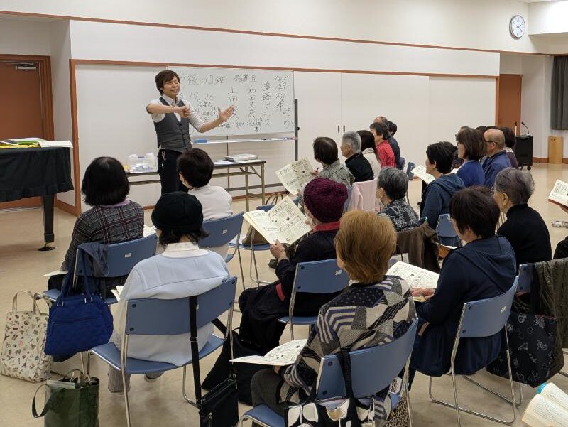2025年10月29日(水)午前、和田丈広指導員と上田賢指導員の2人体制で、桜井市まほろばセンター 多目的ホールを主な拠点会場として活動している「桜井童謡コーラス」の活動が行われました。