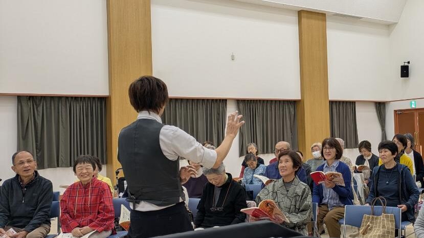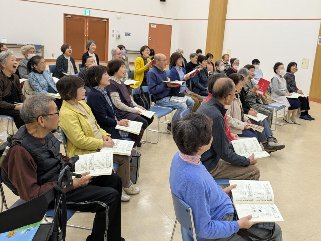 この日のプログラムでは、「♪赤とんぼ」や「♪ゆうやけこやけ」など、秋の訪れを感じさせるしとやかな童謡が登場。会場には、穏やかな歌声が心地よく広がりました。