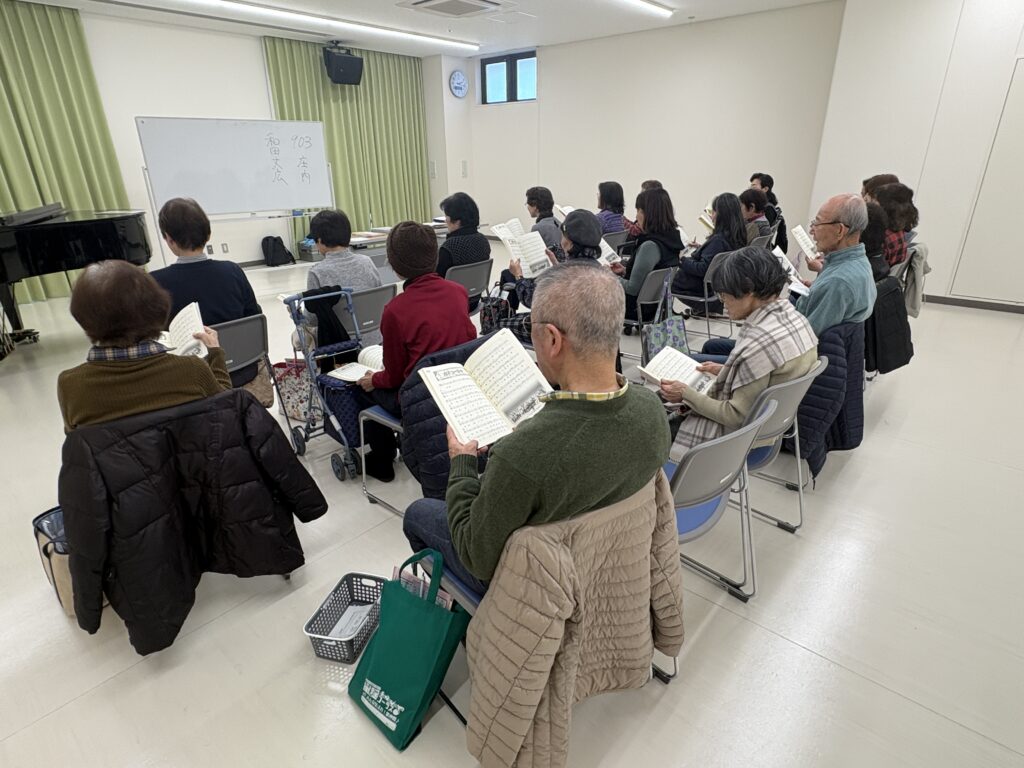 2025/12/11(木)、豊中市立庄内公民館の4階 講座室にて、庄内童謡コーラスの年内最後の活動が行われました!