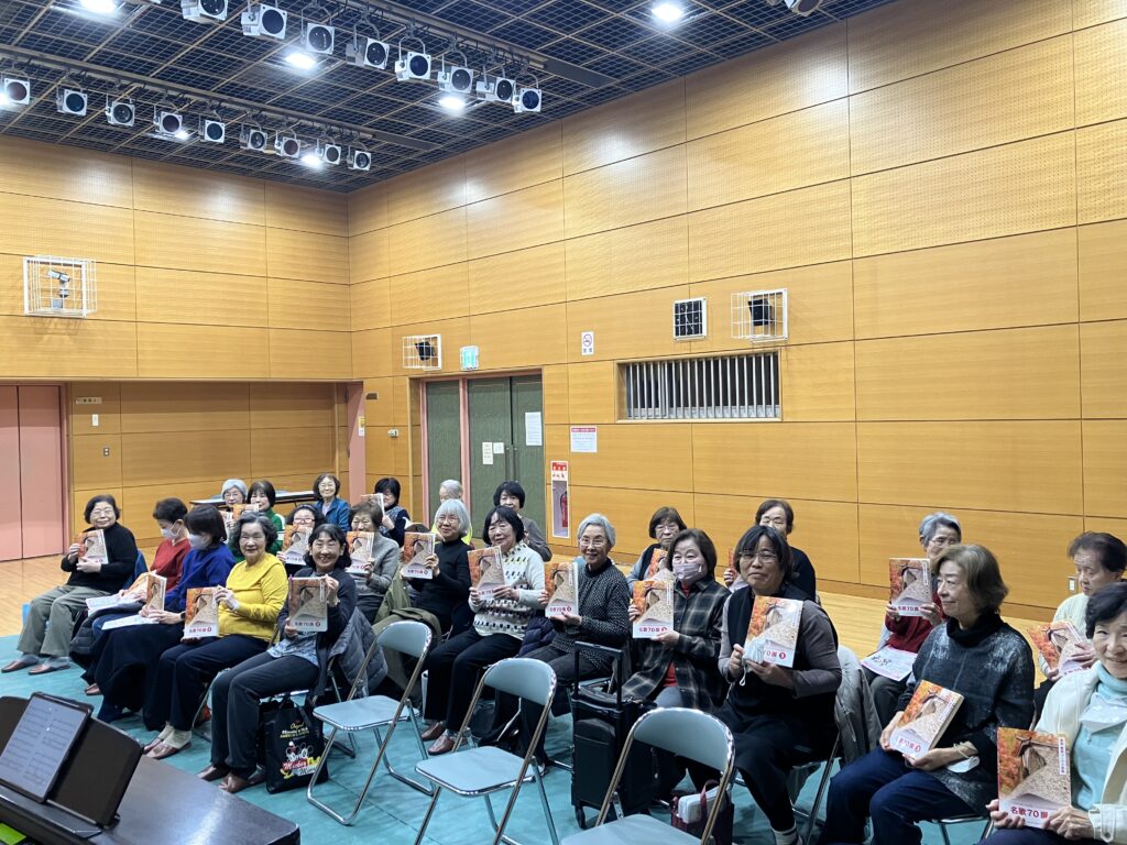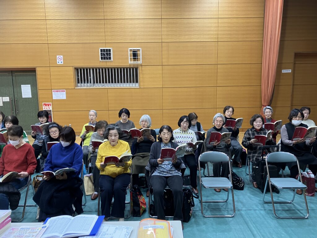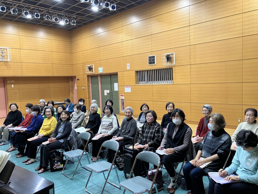 童謡コーラスの団員の皆様、今年一年間の地域生涯学習活動のご参加お疲れさまでした。地域文化の発展、社会教育の推進に寄与されました皆様のご活躍ご功績に敬意を表します。