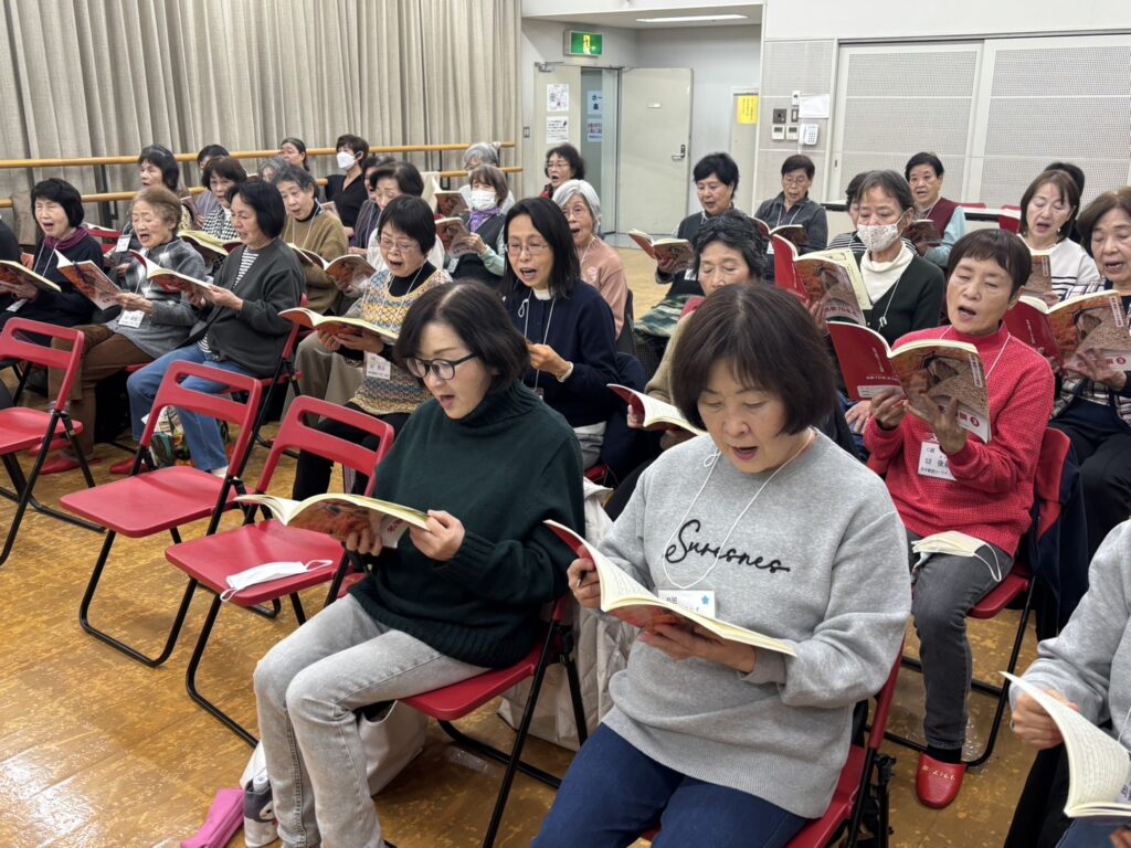 童謡コーラスの団員の皆様、今年一年間の地域生涯学習活動のご参加お疲れさまでした。地域文化の発展、社会教育の推進に寄与されました皆様のご活躍ご功績に敬意を表します。