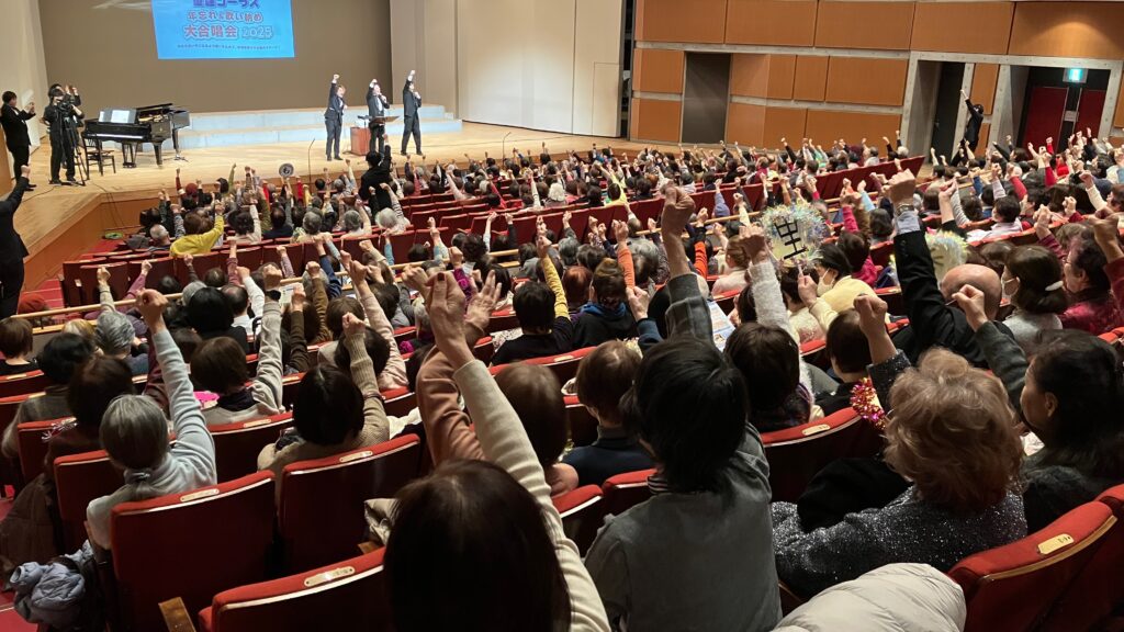 京都公演 冬の合唱会2025 2025年12月25日 by 鈴木アトム 2025年12月18日(木)午後、京都呉竹ホールにおいて、「2025年冬季定期公演 童謡コーラス年忘れ&歌い納め合唱会」の5回目公演が無事に行われました。 ハモリに挑戦!混声合唱ブラボー!