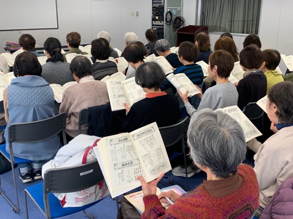三田童謡コーラスは火曜日朝10時00分〜11時30分、三田市フラワータウン市民センターにて活動をしています。
