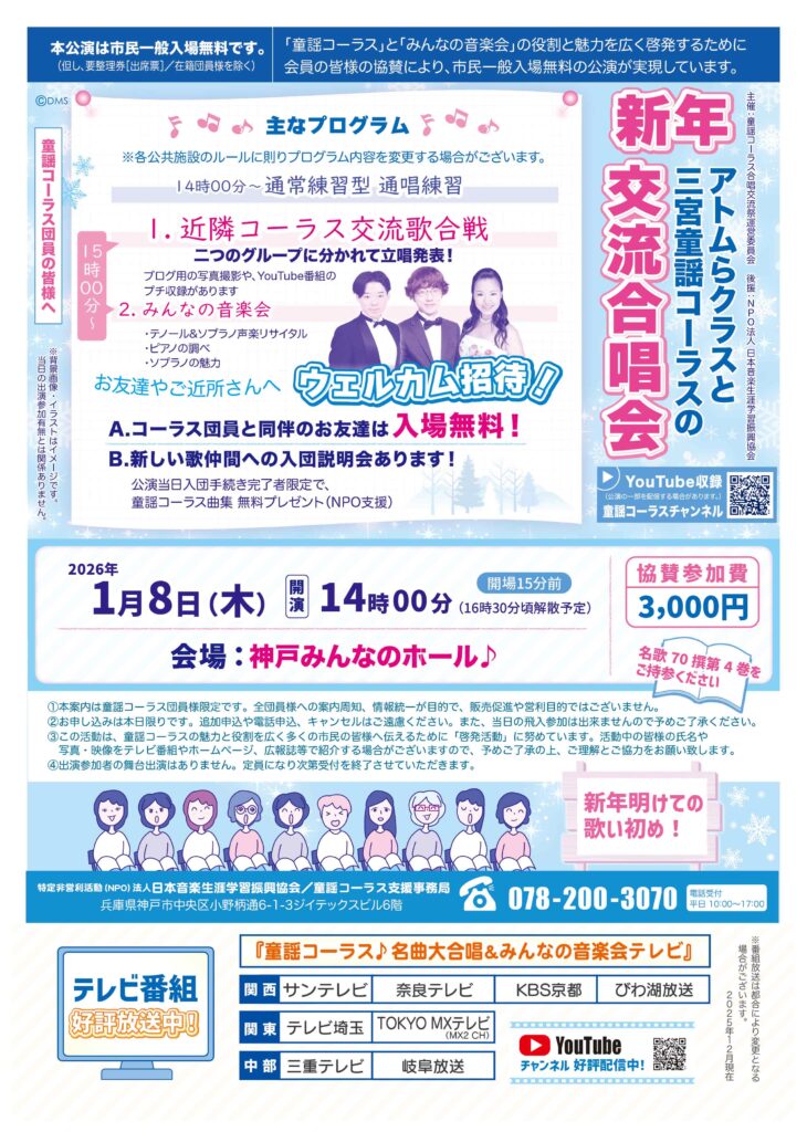 童謡コーラスの団員の皆様、2025年は地域生涯学習活動のご参加お疲れさまでした。地域文化の発展、社会教育の推進に寄与されました皆様のご活躍ご功績に敬意を表します。