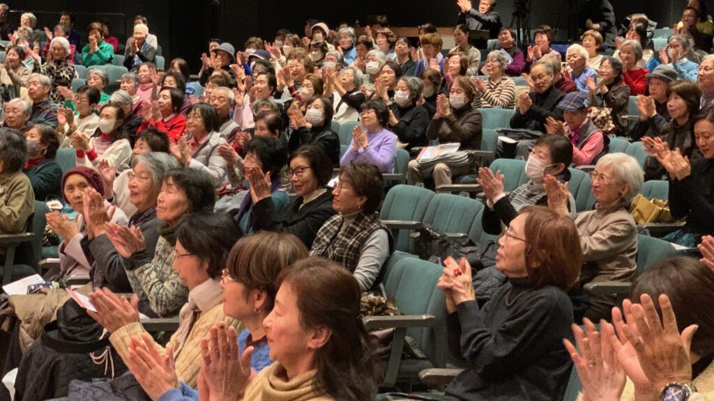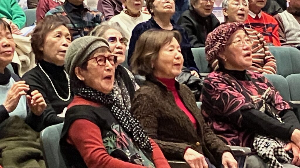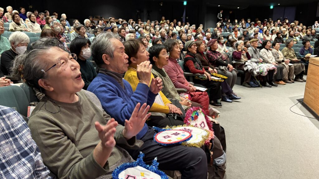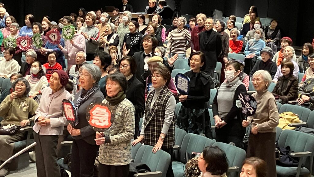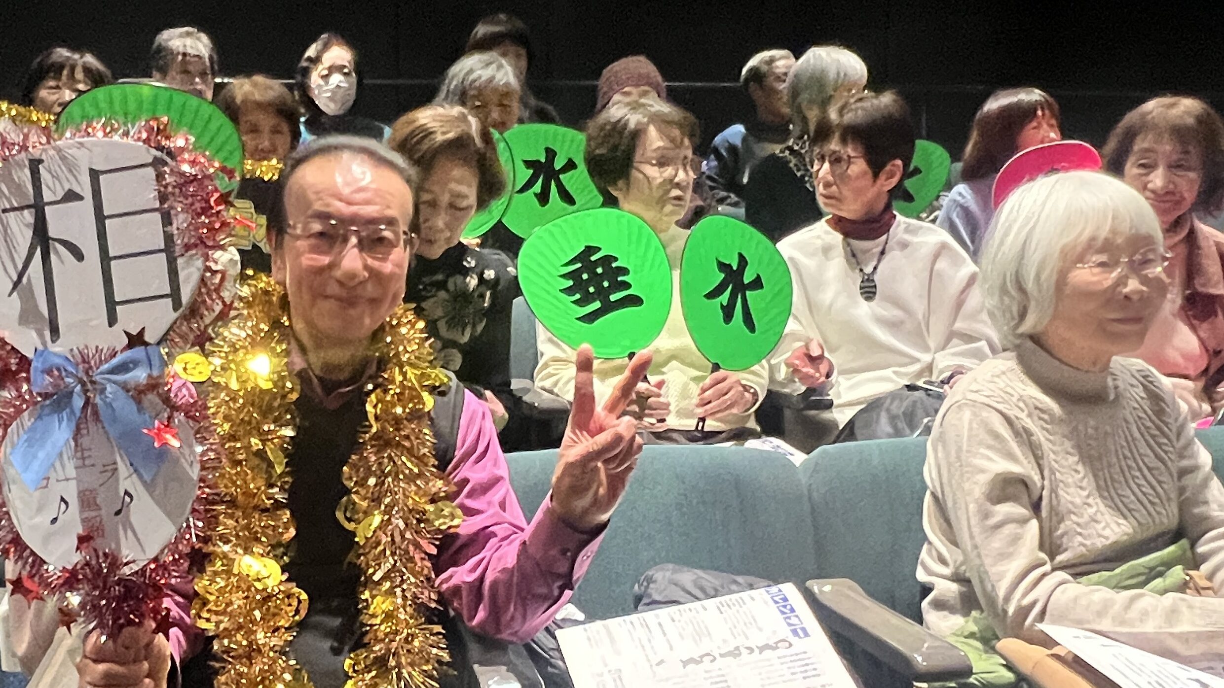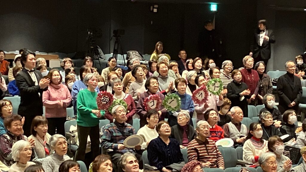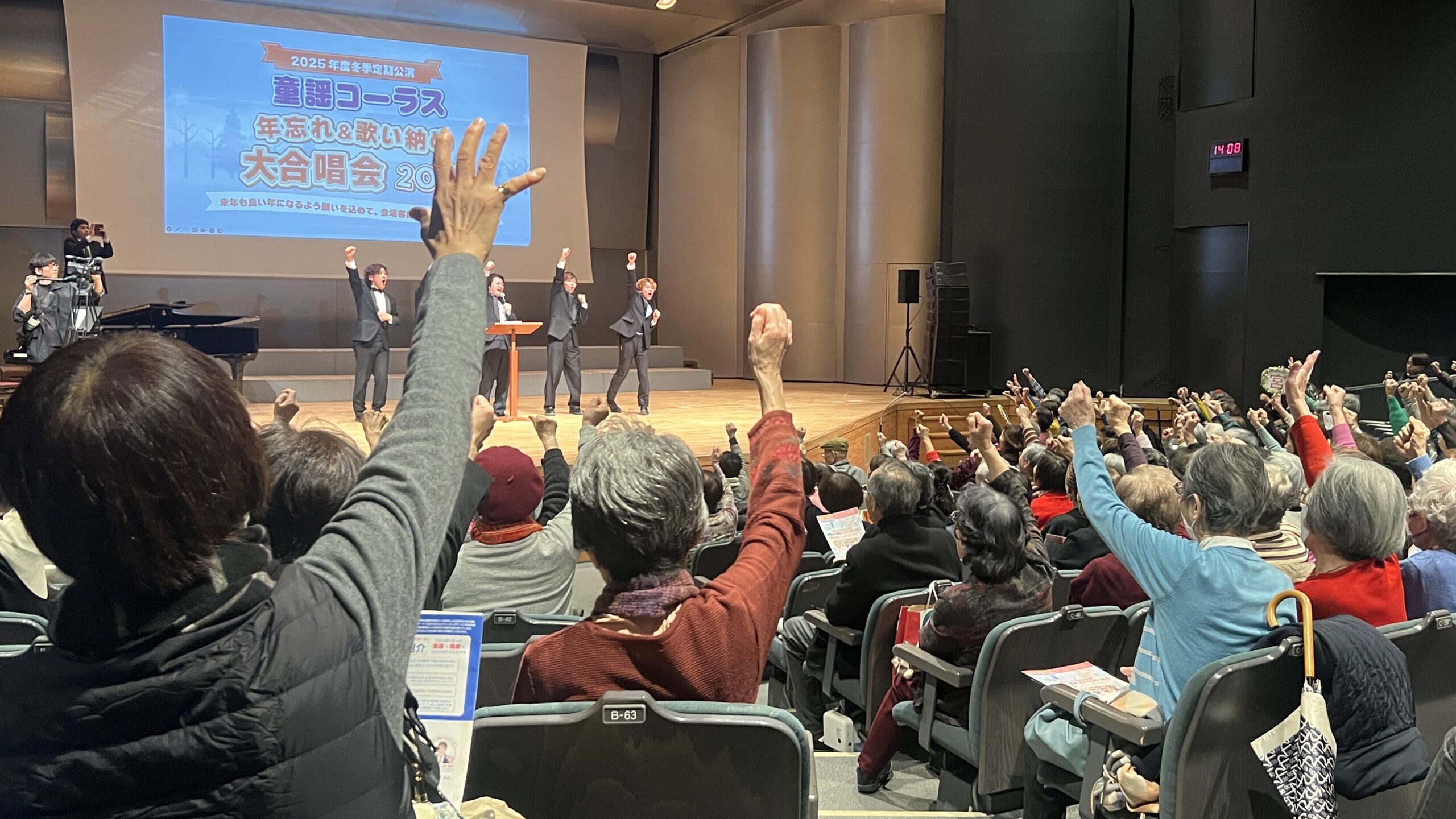 今年の歌い忘れ、歌い残しはありませんね、お腹の底から歌って♪笑っての楽しい時間をご一緒できました。コーラスはいくら上手でも1人ではできません。2人、3人と歌仲間が集まり、より声が重なり合うことで、童謡コーラスのハーモニーになります。指導員らも舞台上からたくさんの笑顔を発見できたことを嬉しく思います。どうぞ、皆様、良いお年をお迎えください。