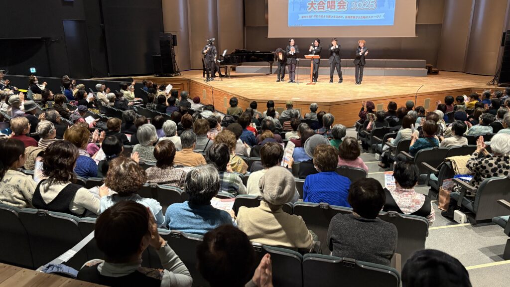 2025年12月17日(水)午前、芦屋市立ルナホールにおいて、「2025年冬季定期公演 童謡コーラスの年忘れ&歌い納め合唱会」の阪神公演の2回目、午後公演が無事に行われ大合唱、大成功を果たしました。