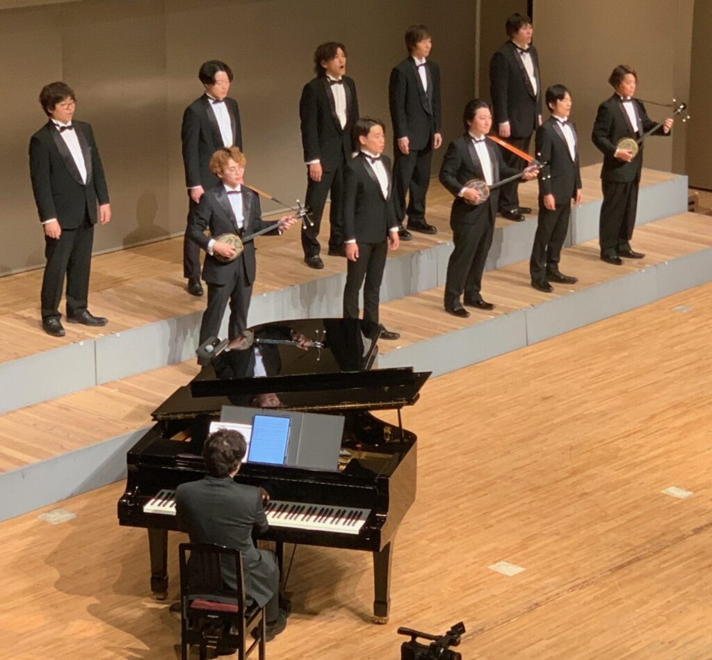 ピアノ伴奏のみならず三線にも挑戦しました。