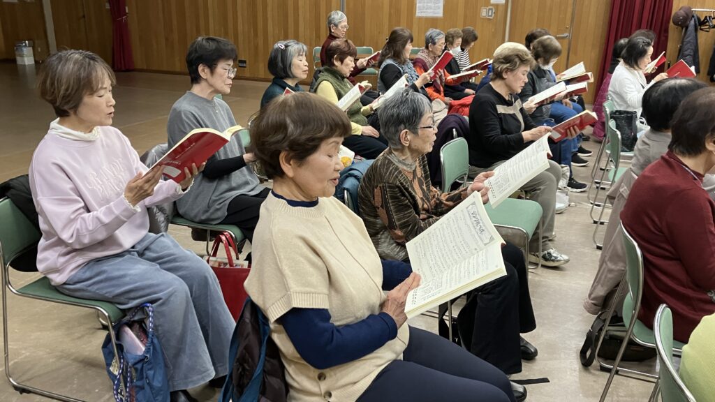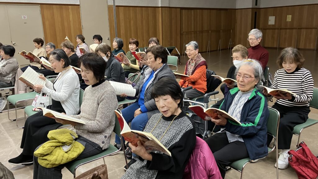2025年最後の活動日でした。人数も多いコーラスですが皆仲良し。クリスマスの曲を声高らかに歌います!