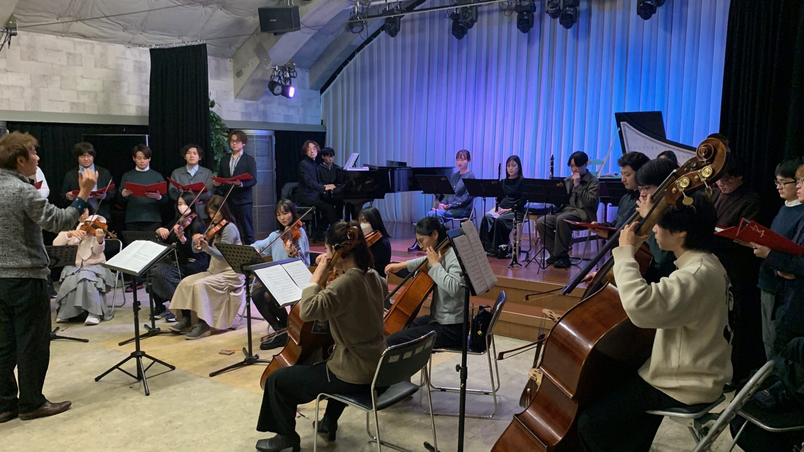 そして、午後からは7日(水)の新春公演で童謡コーラス各地区有志の皆様で結成され2026年の童謡コーラス歌い初め[新春公演2026記念コーラス]のオーケストラ稽古が行われました。