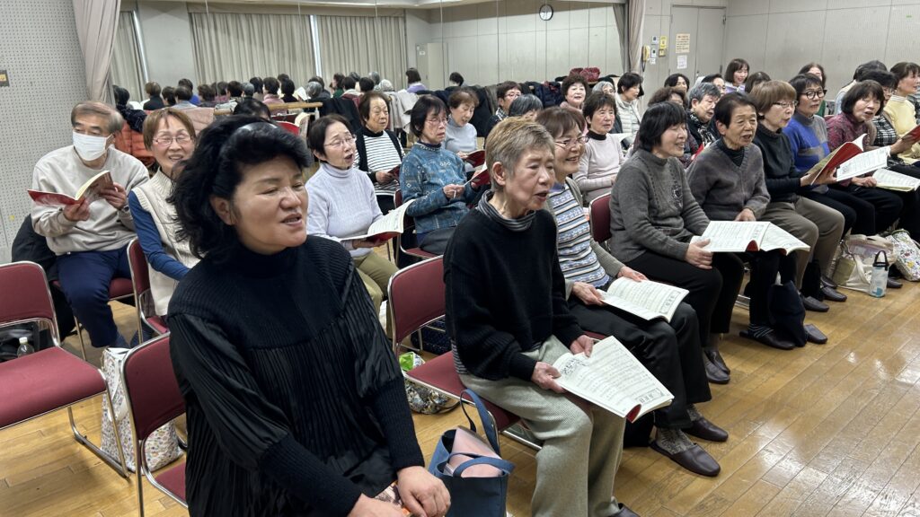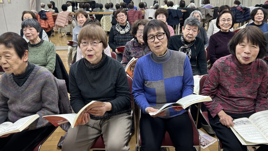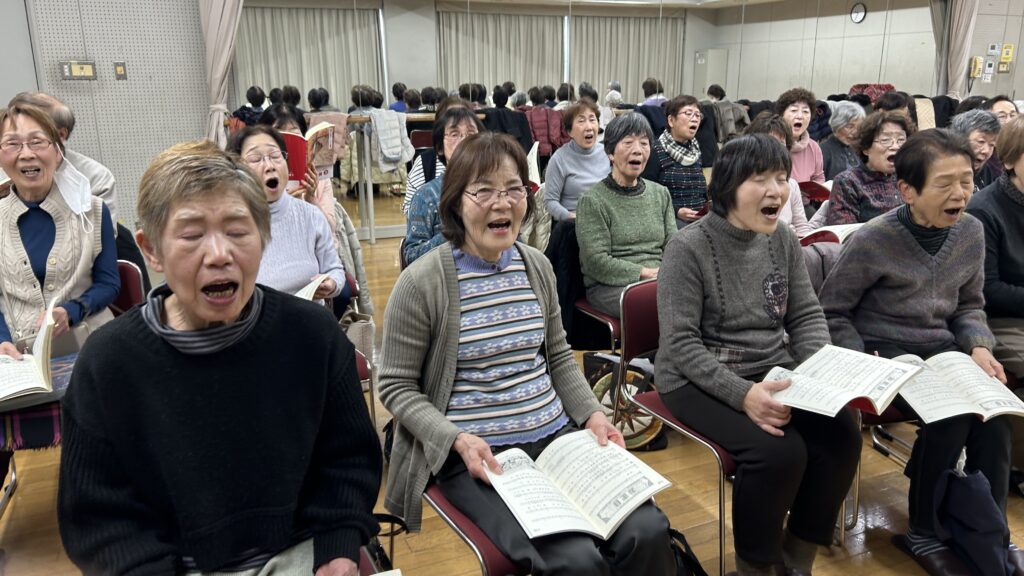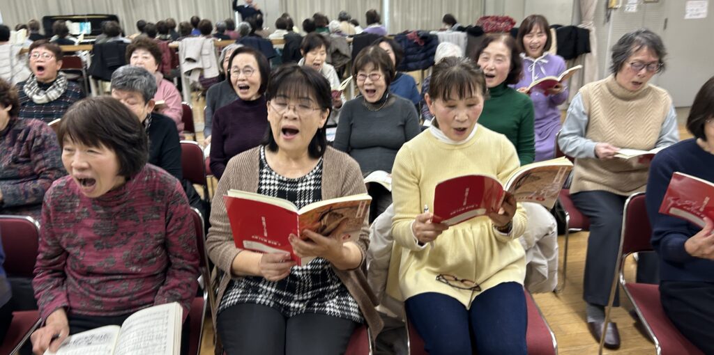 2025年12月12日の平野童謡コーラスからレポートです。平野童謡コーラスは金曜日午後13時00分から14時30分に活動しています。主な活動拠点はクレオ大阪南の3階音楽室です。