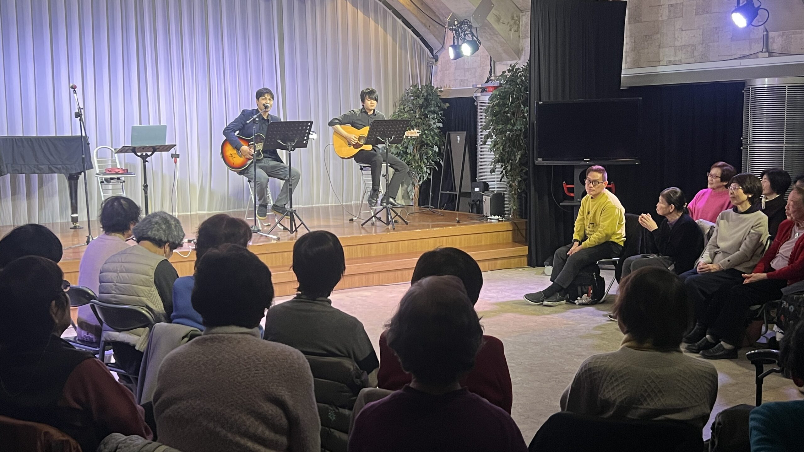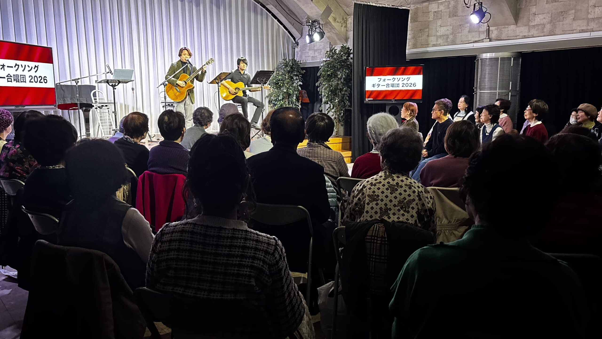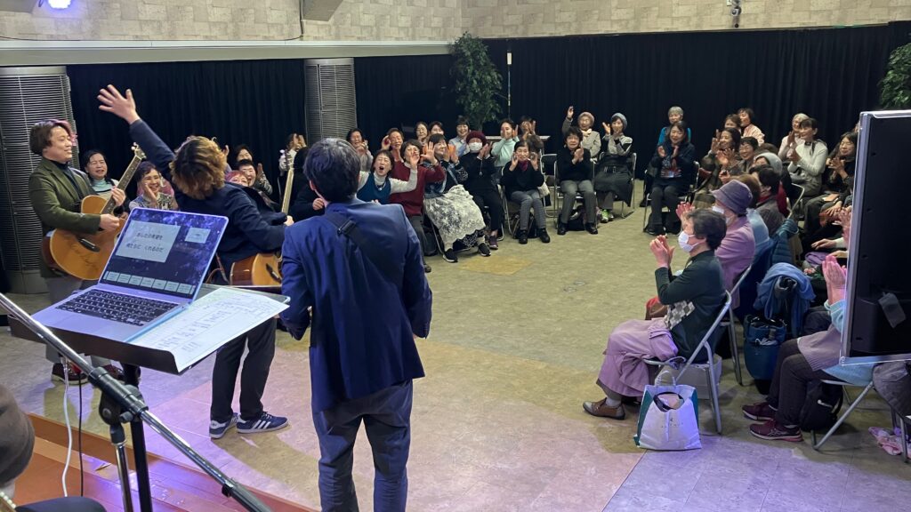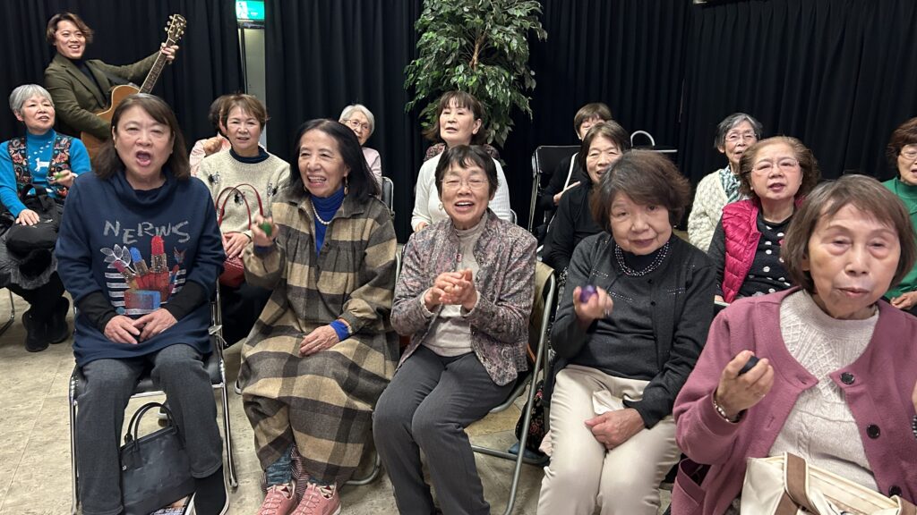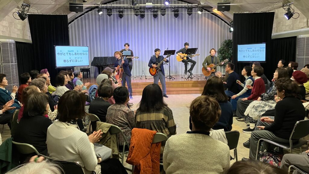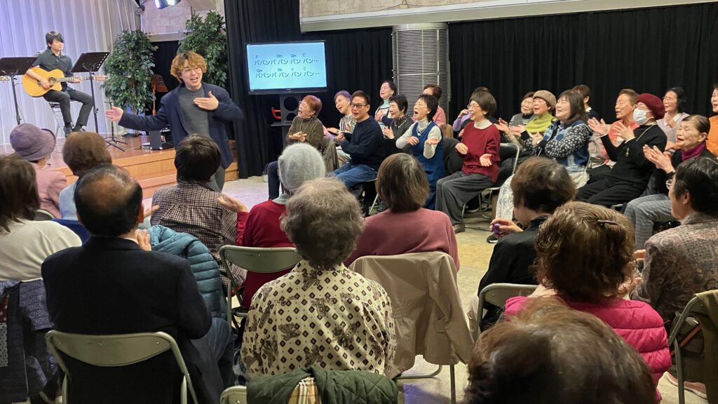 2026年3月7日(土)朝10時00分から神戸みんなホールにおいて、童謡コーラスの歌仲間によるフォークソング合唱会が行われました。鈴木アトム指導員や中能丈弥指導員らがフォークギターを弾きながら、合唱団員の皆さんと数々のヒットソングを歌いました。
