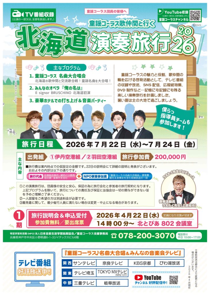 童謡コーラス(みんなの音楽会)の広報誌が7年ぶりに発行されます。コロナ禍での活動休止を経て、再開スタートからの今日までの復活事業が掲載されています。イタリア演奏旅行や沖縄プロジェクトの始動、さらには、今回の北海道演奏旅行につながっています。